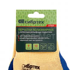 - Перчатки трикотажные, полиэфирные, латексное рельефное покрытие, размер 9 Сибртех