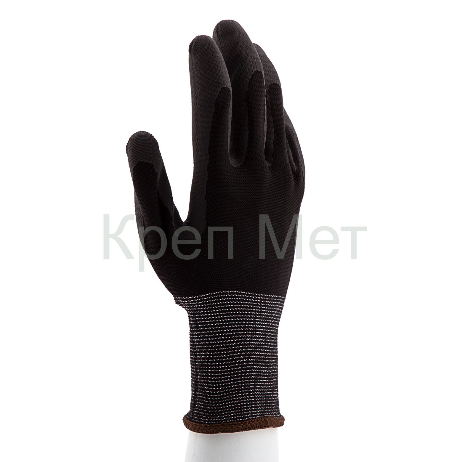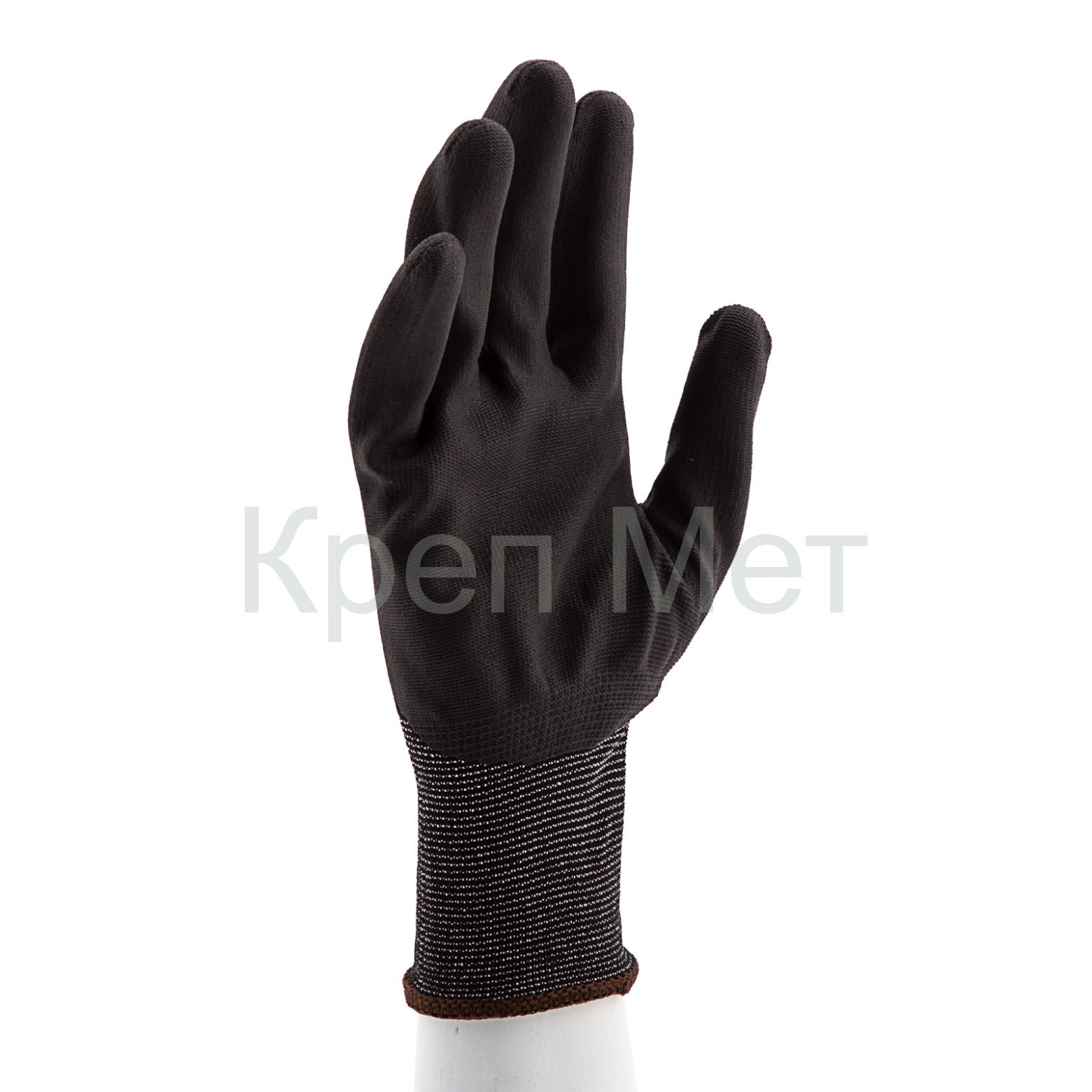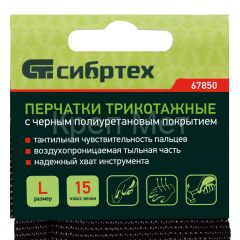 - Перчатки трикотажные с черным полиуретановым покрытием, размер L, 15 класс вязки Сибртех