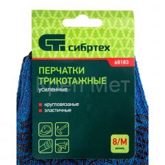 Усиленные трикотажные перчатки Сибртех 68183, синие, с гелевым ПВХ-покрытием, 7 класса вязки, надевают на руки при выполнении тяжелых строительных, монтажных, ремонтных, сборочных и погрузо-разгрузочных работ. Толстая эластичная пряжа надежно защищает кисти рук от травм и попадания грязи, не препятствуя движениям пальцев. Нанесенный на ладонную сторону ПВХ-гель исключает скольжение и способствует надежному захвату инструментов и других предметов.
