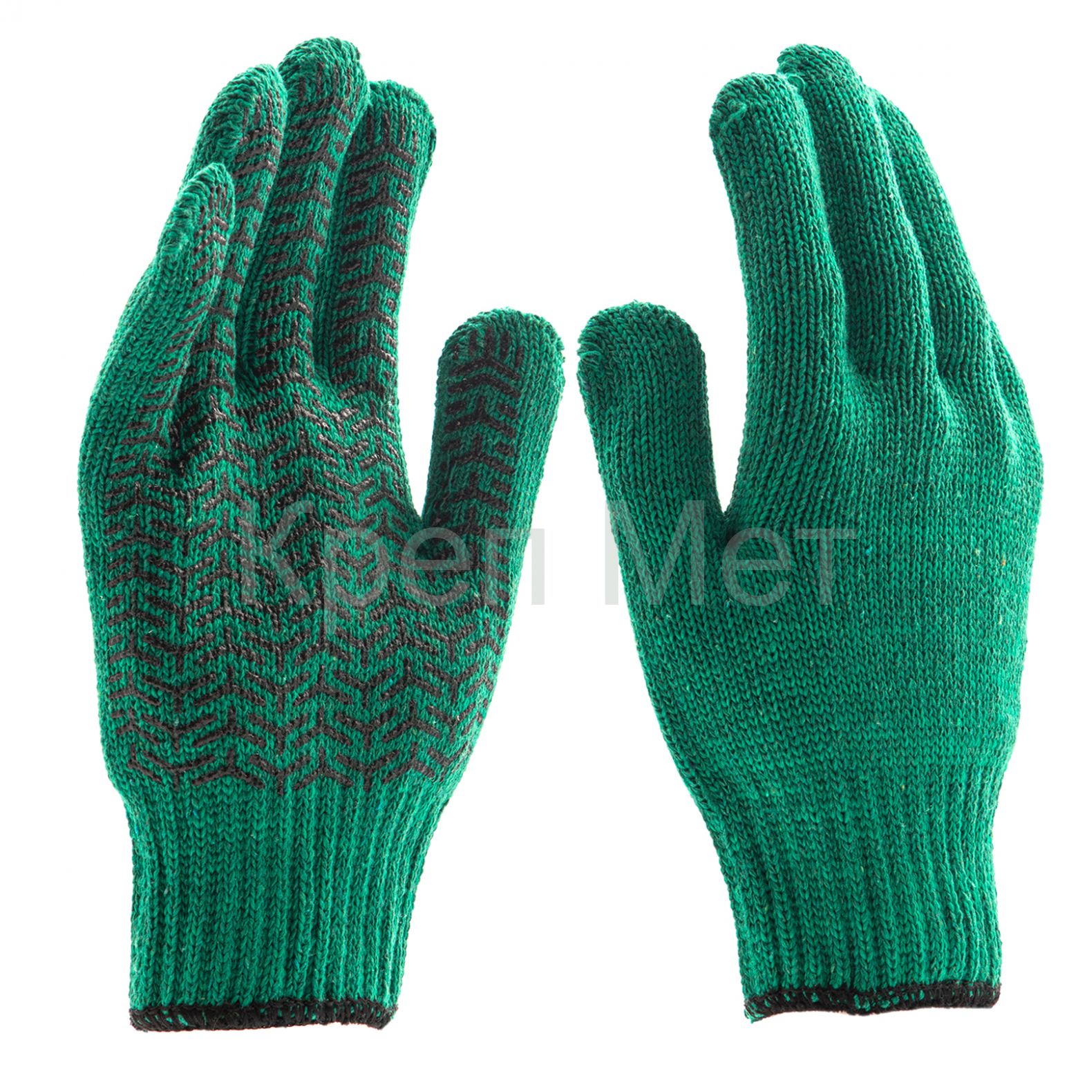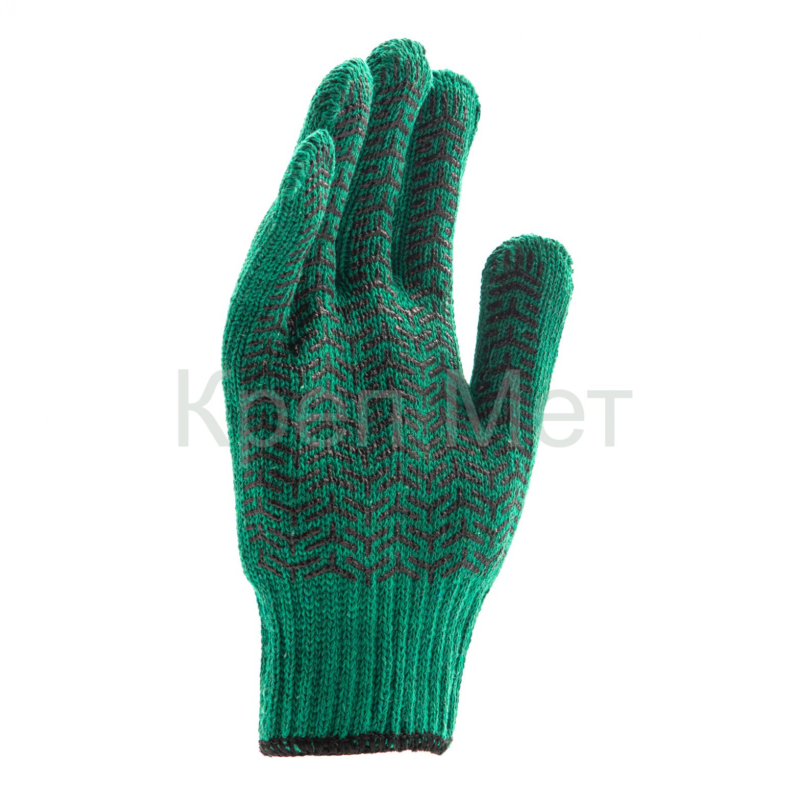 - Перчатки трикотажные усиленные, гелевое ПВХ-покрытие, 7 класс, зеленые Сибртех