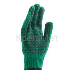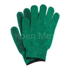 Усиленные трикотажные перчатки Сибртех 68184, зеленые, с гелевым ПВХ-покрытием, 7 класса вязки, надевают на руки при выполнении тяжелых строительных, монтажных, ремонтных, сборочных и погрузо-разгрузочных работ. Толстая эластичная пряжа надежно защищает кисти рук от травм и попадания грязи, не препятствуя движениям пальцев. Нанесенный на ладонную сторону ПВХ-гель исключает скольжение и способствует надежному захвату инструментов и других предметов.