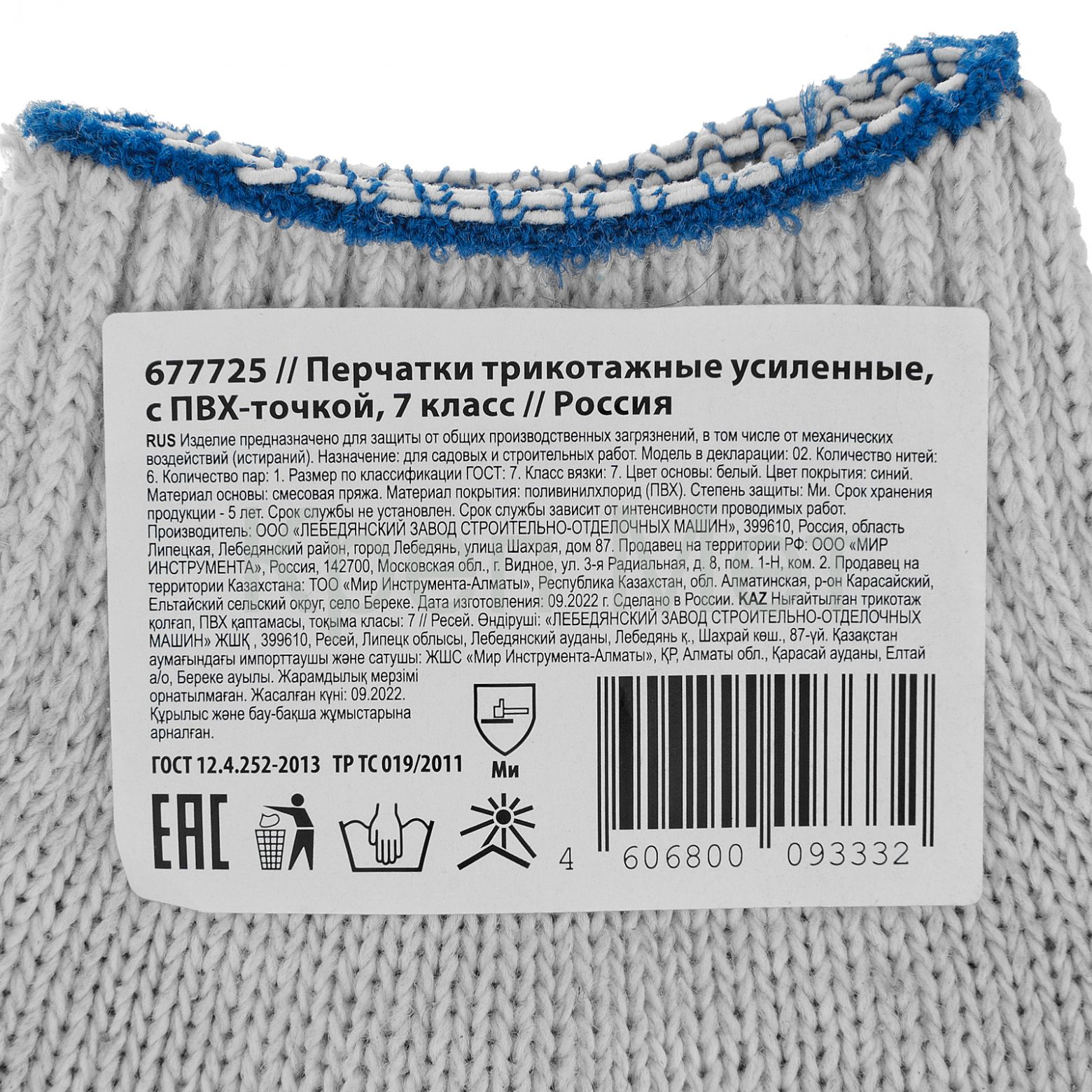 Перчатки трикотажные усиленные, с ПВХ точкой, 7 класс вязки