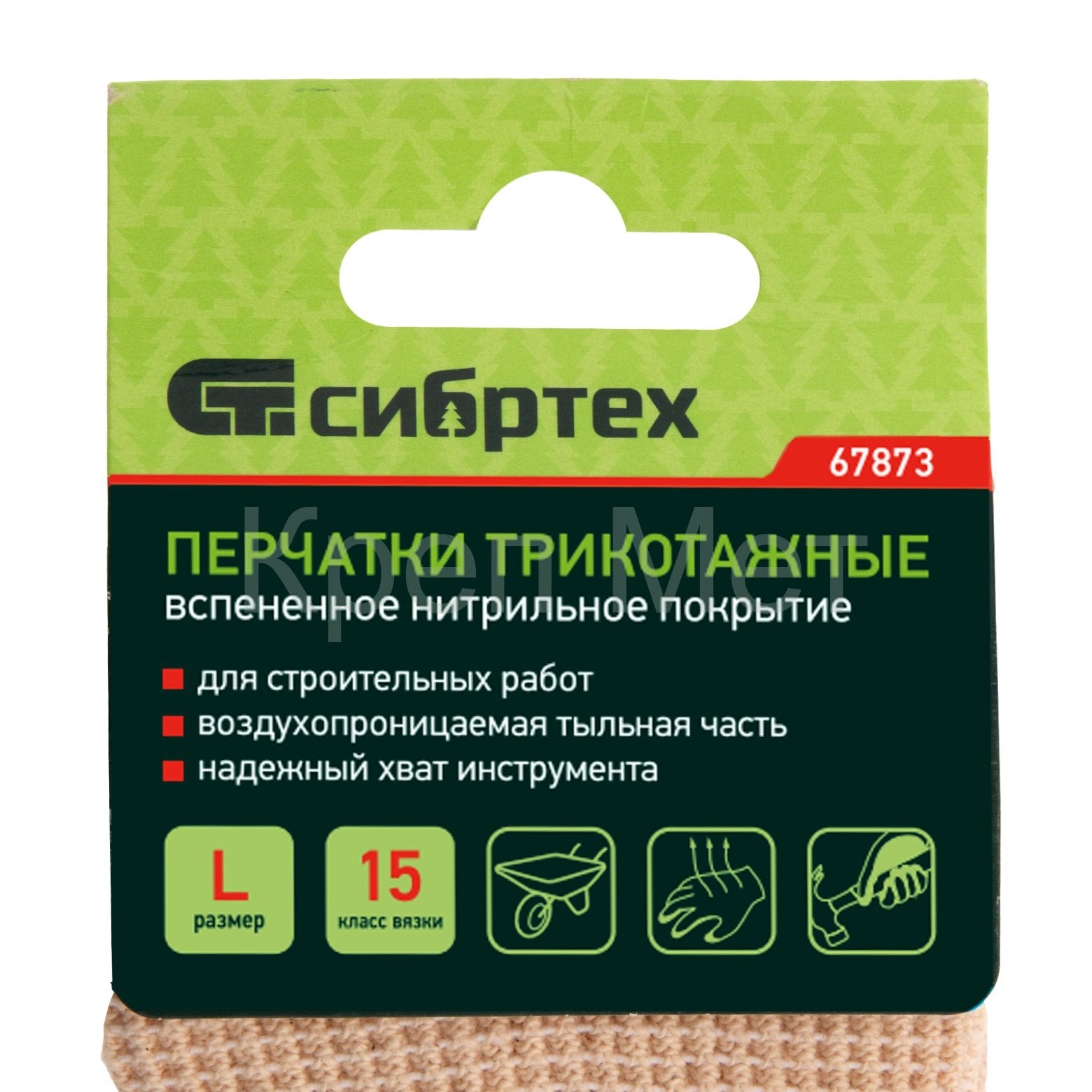 Перчатки трикотажные, вспененное нитрильное покрытие, размер L, 15 класс вязки Сибртех