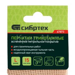 - Перчатки трикотажные, вспененное нитрильное покрытие, размер L, 15 класс вязки Сибртех