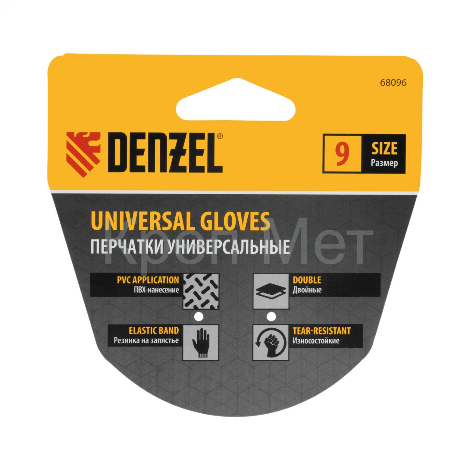 - Перчатки универсальные, двойные, ПВХ нанесение, размер 9 Denzel