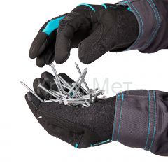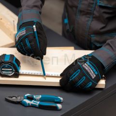 - Комфорт во время работы — ударопоглощающие накладки защищают ладони от вибраций, а швы, выполненные по технологии Ergonomic Cut, не натирают кожу.