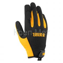 Универсальные перчатки Denzel 67994 размера 10, с манжетами на «липучке», используются для работы со слесарным инструментом. Надежно защищают кожу рук от царапин и мозолей. Пригодятся в мастерской, дома или в гараже.