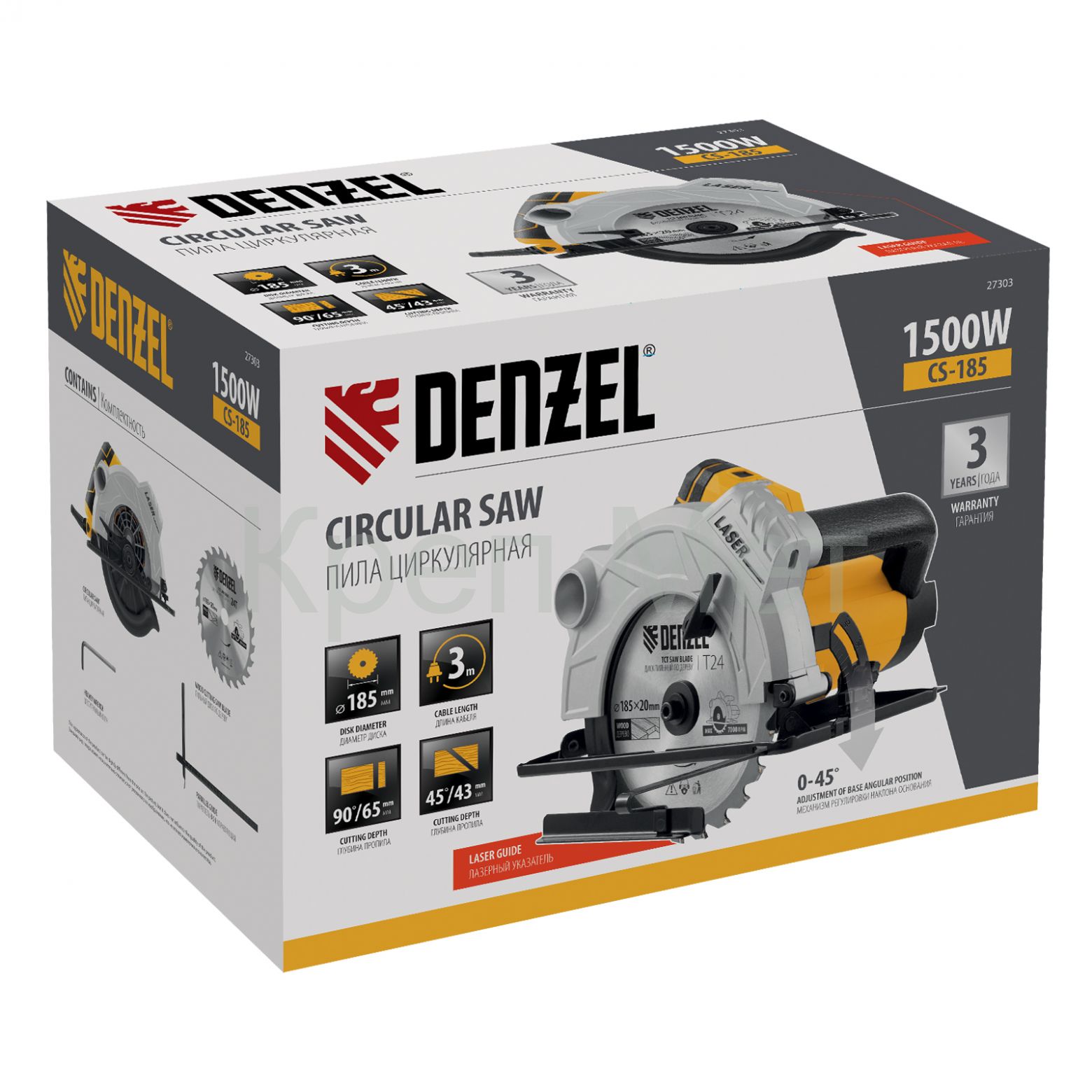 - Пила циркулярная CS-185, 1500 Вт, 185 мм Denzel