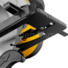 - Быстрая смена оснастки — с помощью кнопки блокировки шпинделя и ручки отвода защитного кожуха даже начинающий мастер сможет без труда заменить пильный диск.