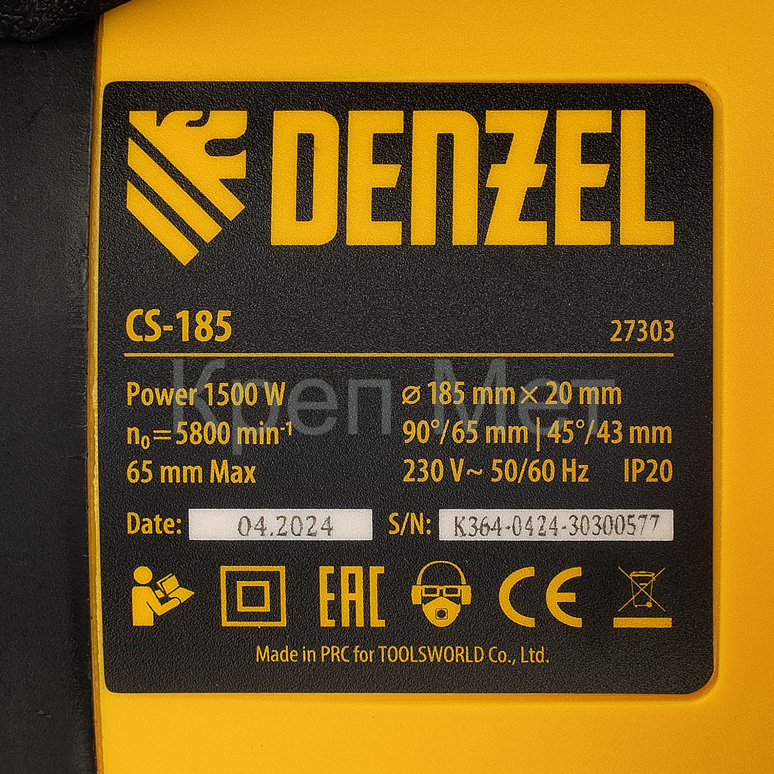 Пила циркулярная CS-185, 1500 Вт, 185 мм Denzel