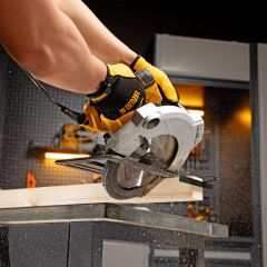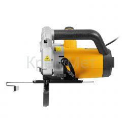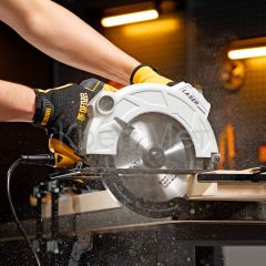 - Высокая точность — лазерный указатель, показывающий линию предстоящего среза, и стальная параллельная направляющая помогают осуществлять ровные прямые пропилы без дополнительной разметки.