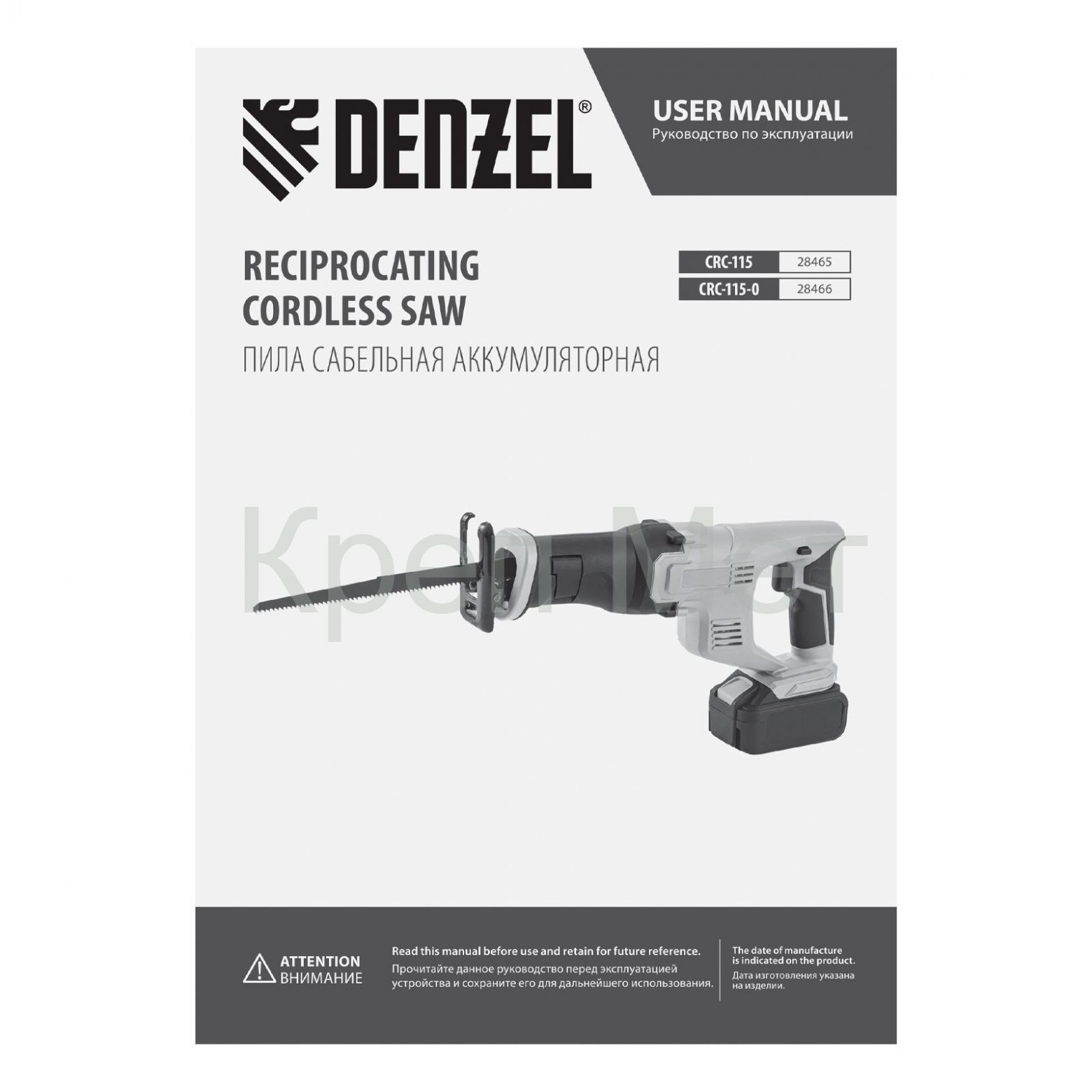 - Пила сабельная аккумуляторная CRC-115, 18В Li-Ion Denzel