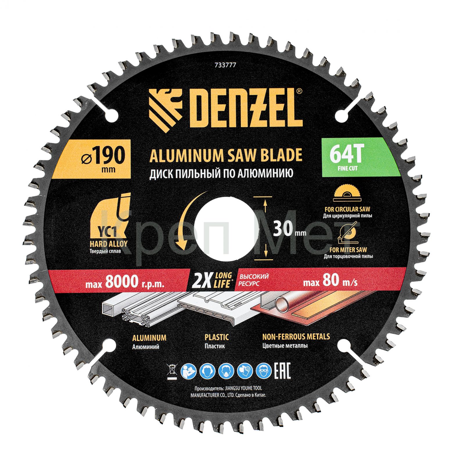 - Пильный диск по алюминию ф190 х 30 мм, 64 зубьев Denzel