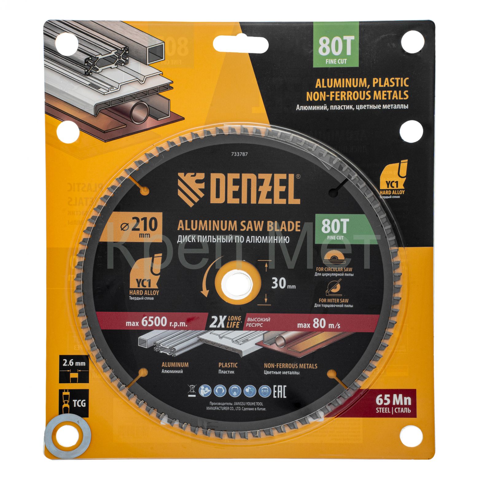 - Пильный диск по алюминию ф210 х 30 мм, 80 зубьев Denzel