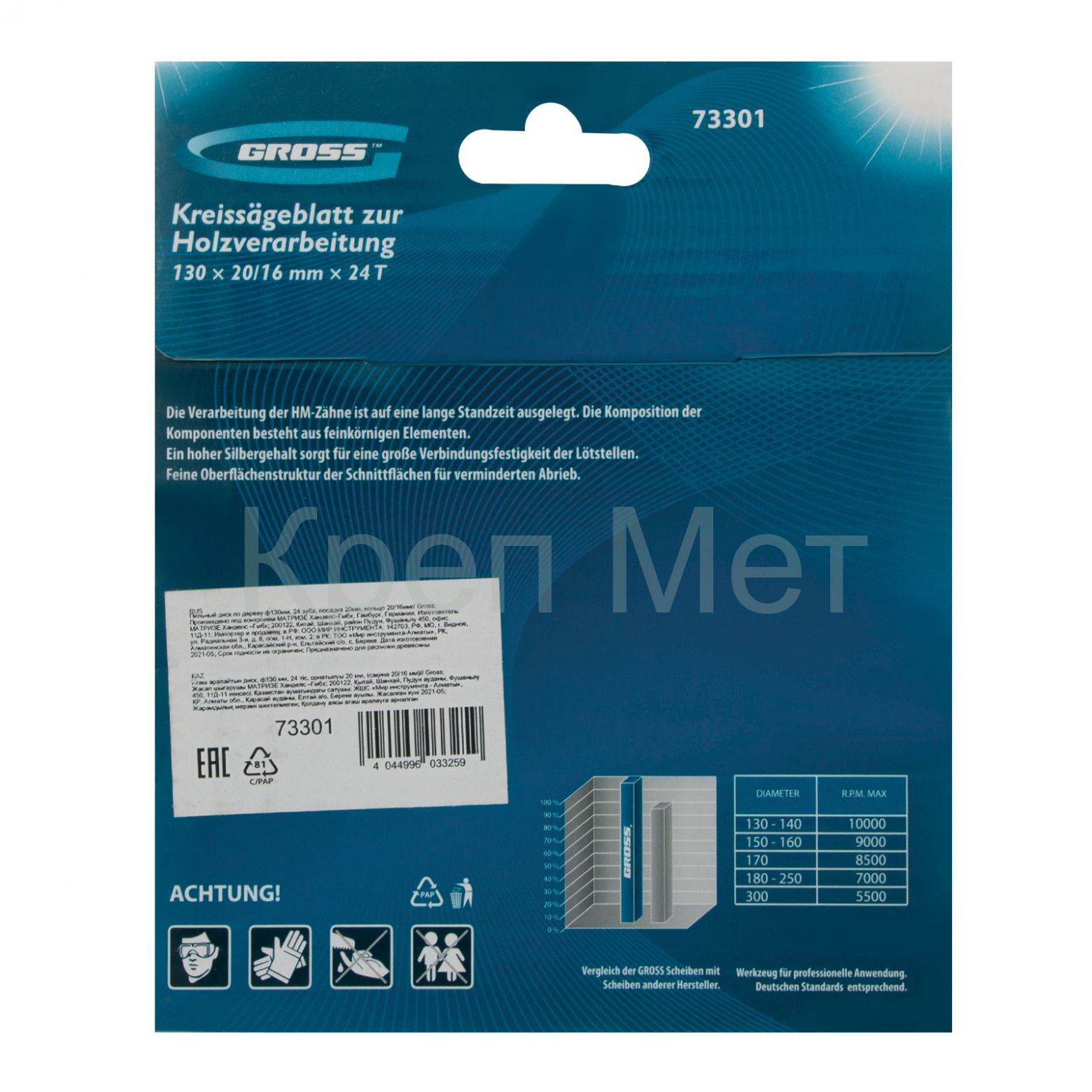 - Пильный диск по дереву 130 x 20/16 x 24Т Gross