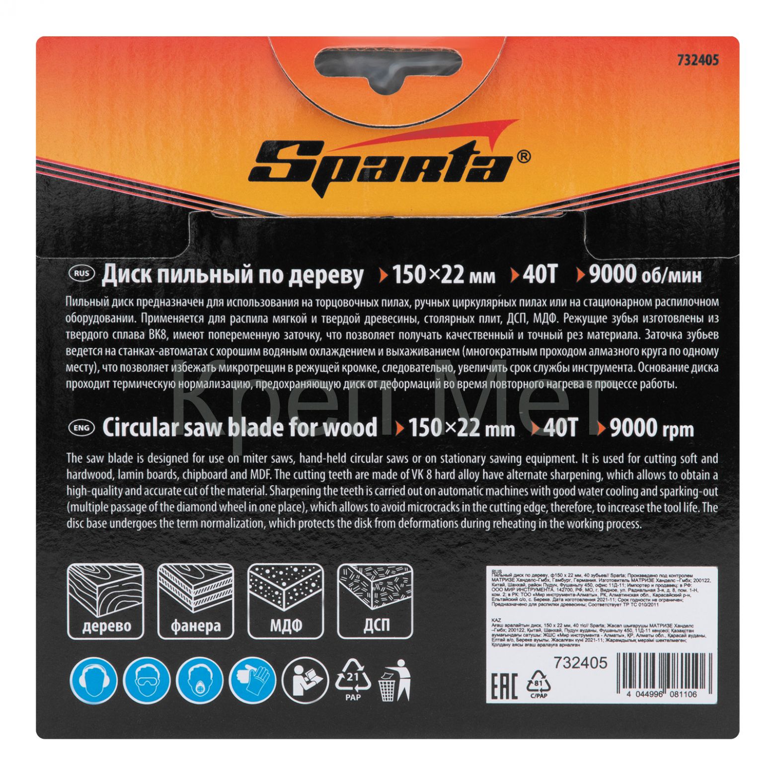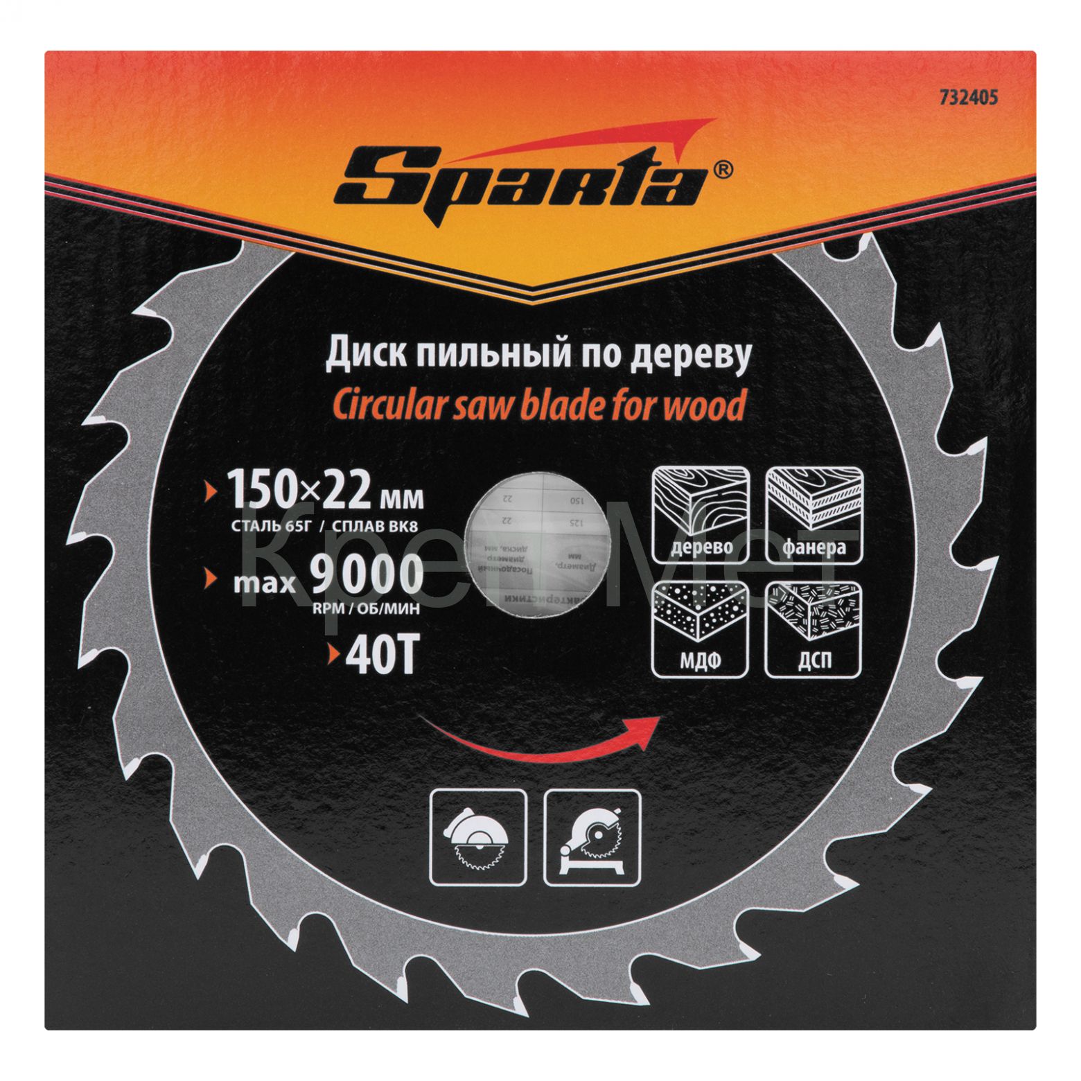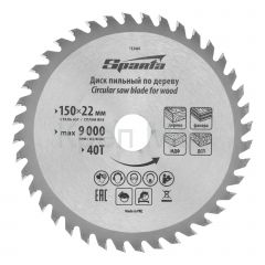 - Пильный диск по дереву, 150 х 22 мм, 40 зубьев Sparta
