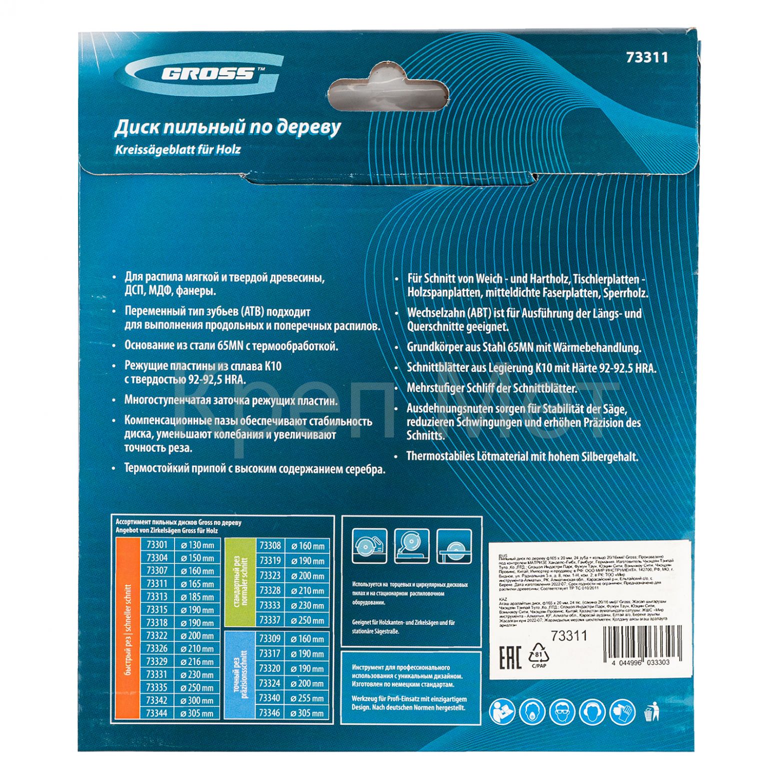 - Пильный диск по дереву 165 x 20/16 x 24Т Gross
