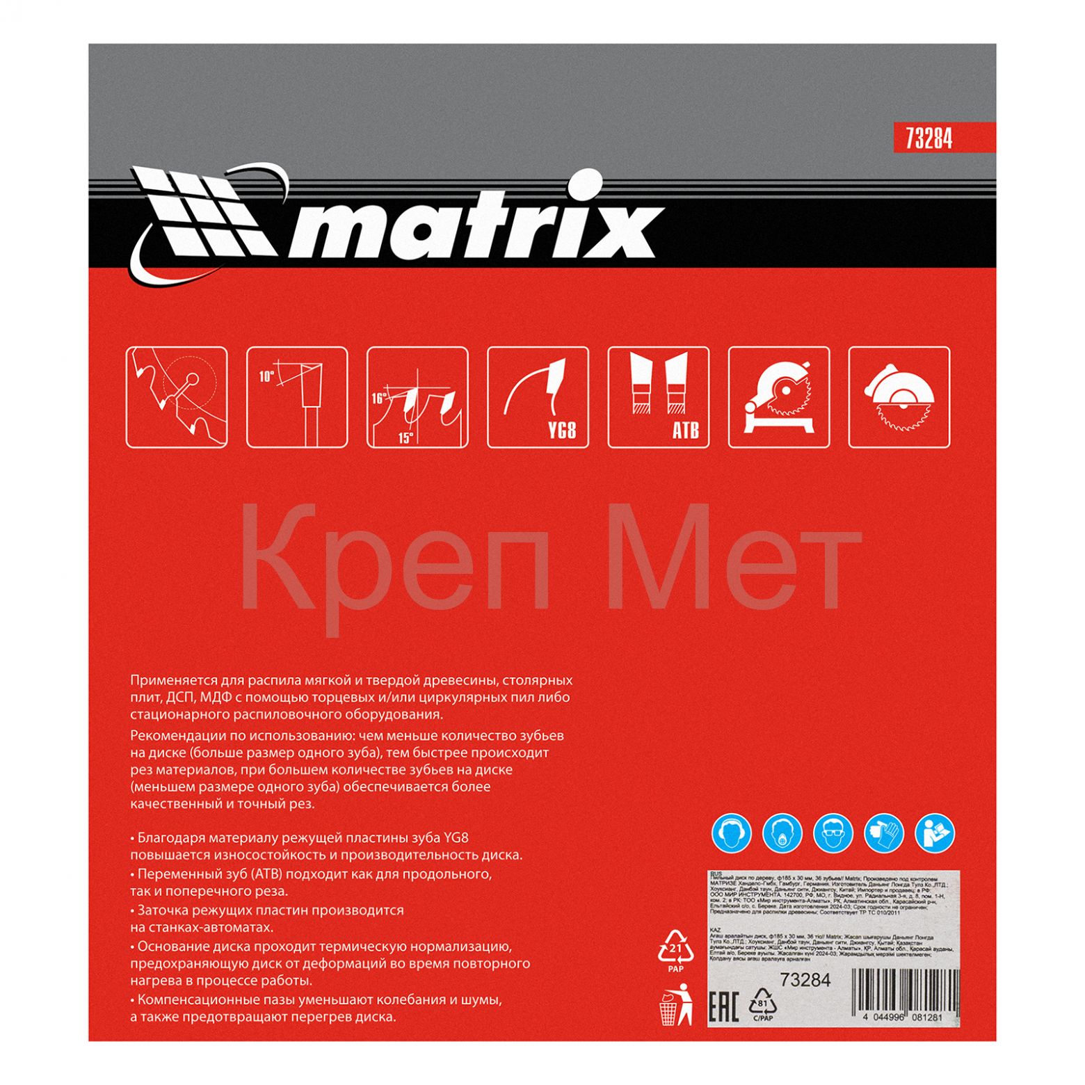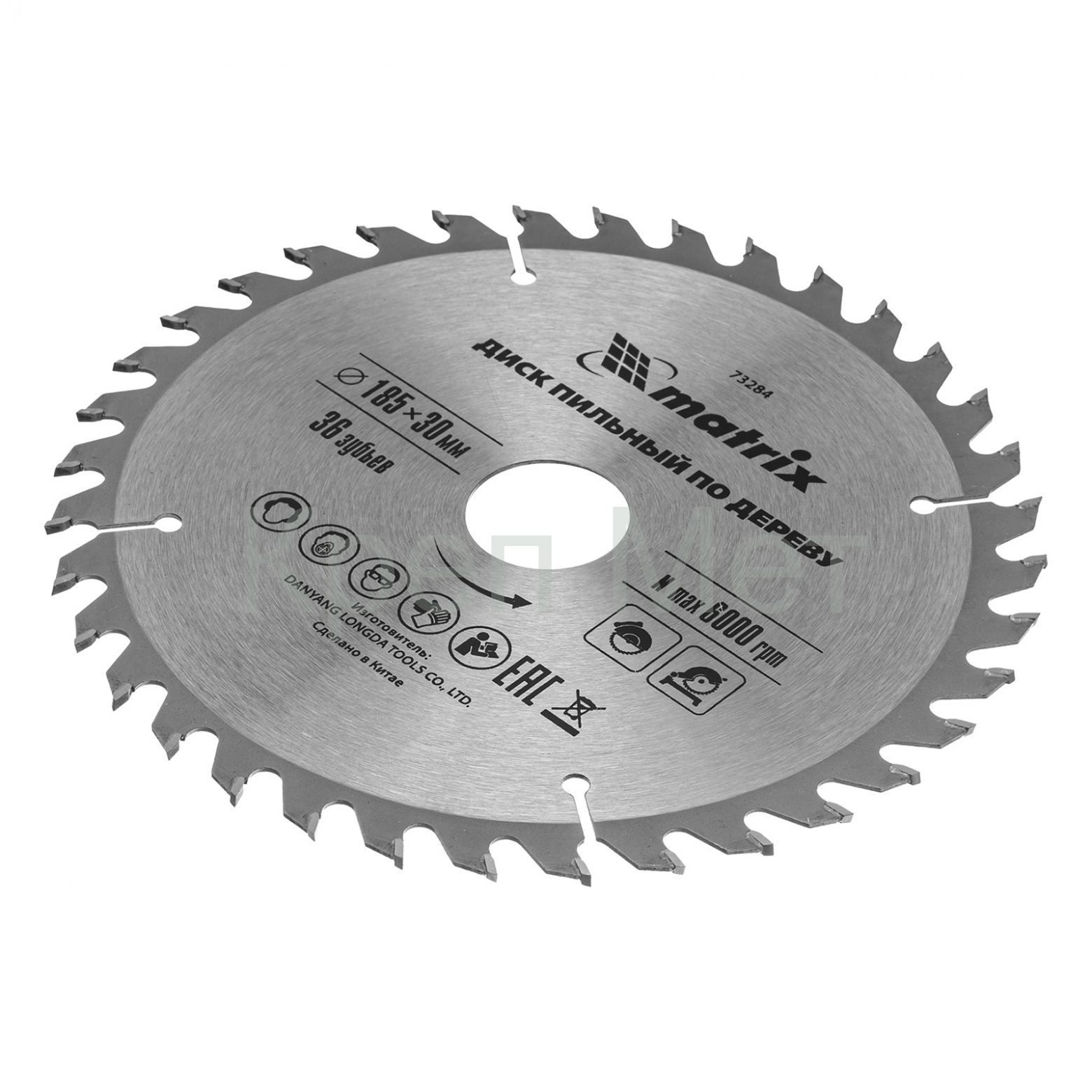Пильный диск по дереву Matrix 73284 диаметром 185 х 30 мм, с 36 зубьями, — оснастка для циркулярных и торцовочных пил с соответствующим посадочным и внешним диаметром. Используется для продольного/поперечного реза материалов из мягкой и твердой древесины, ДСП, ДВП, фанеры, столярных плит. Диск подходит для бытового и профессионального применения.