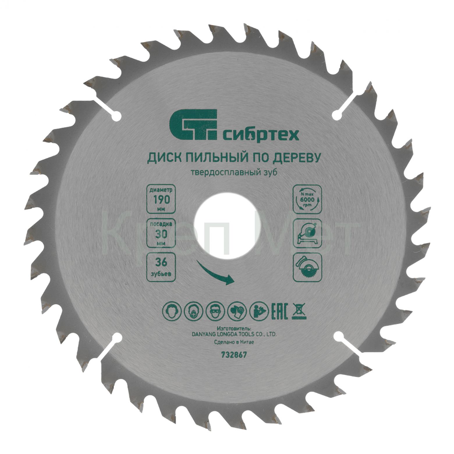 - Пильный диск по дереву, 190 х 30 мм, 36 зубьев Сибртех