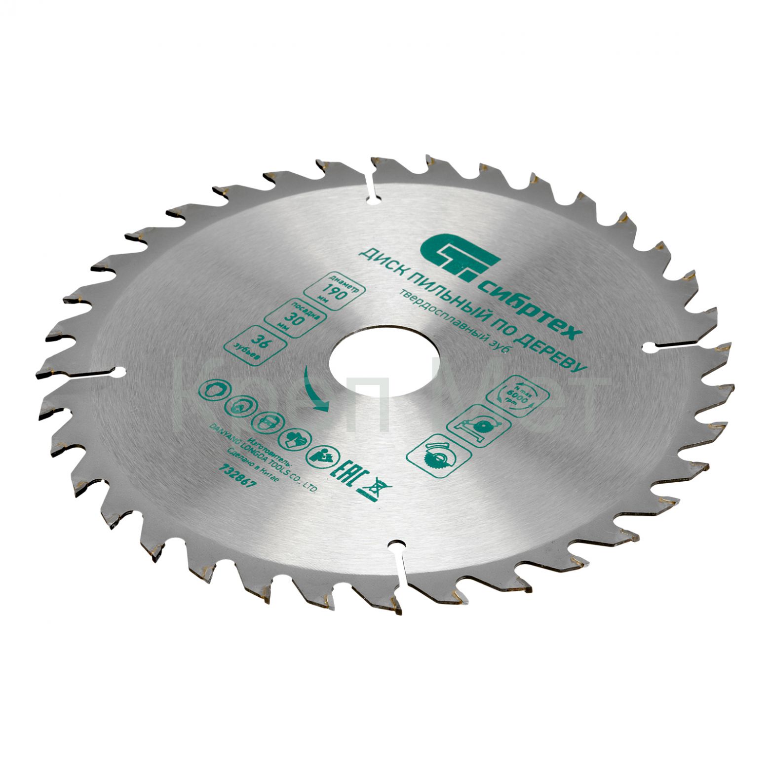 Пильный диск по дереву, 190 х 30 мм, 36 зубьев Сибртех