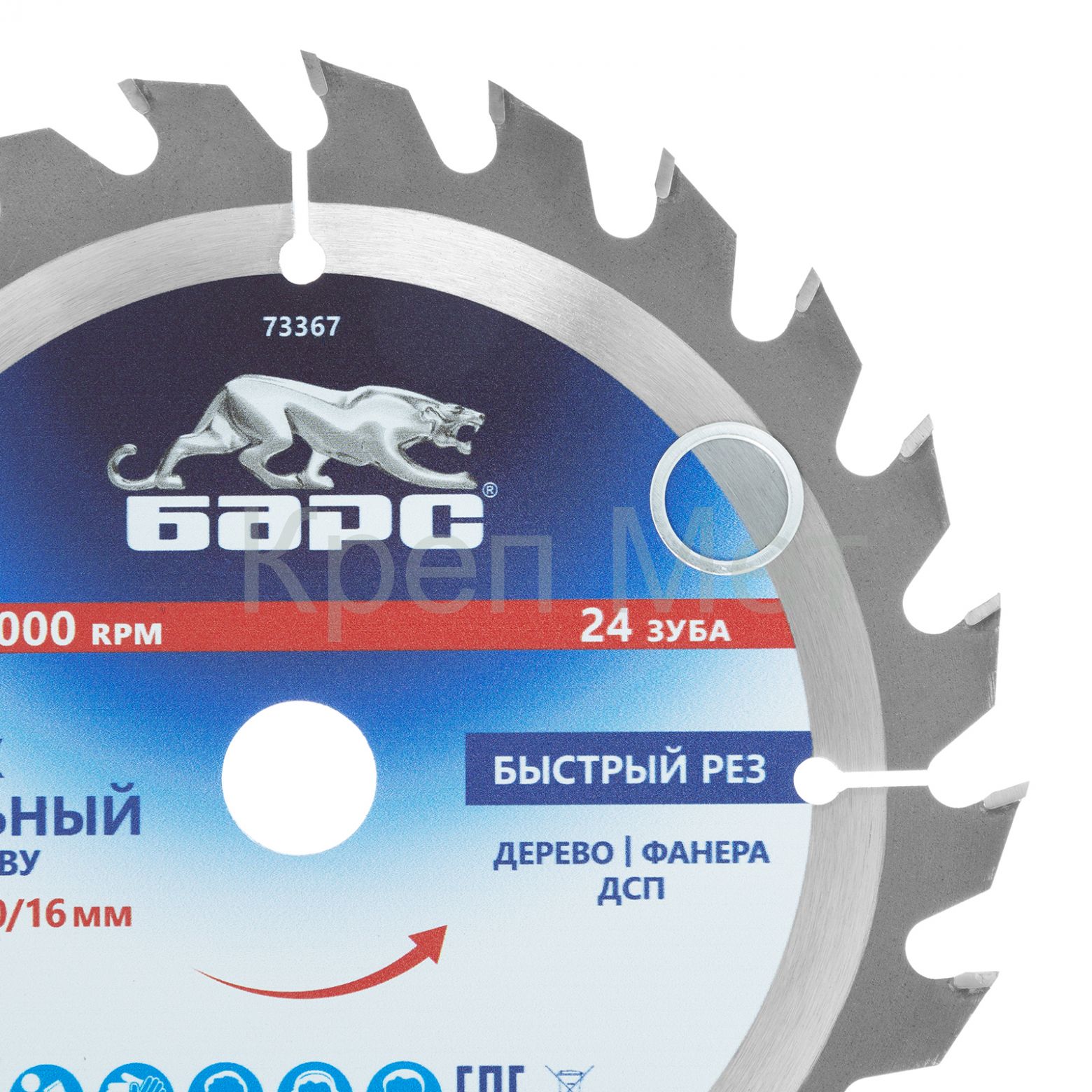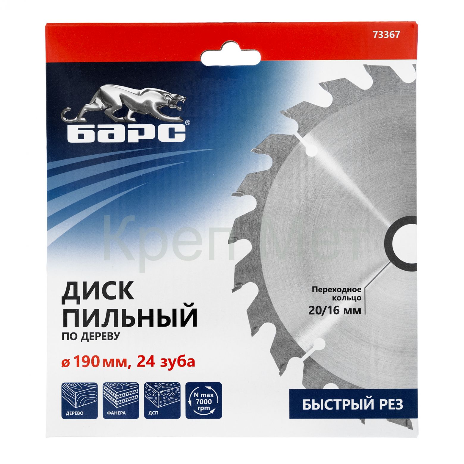 Пильный диск по дереву 190 x 20/16 мм, 24 твердосплавных зуба Барс