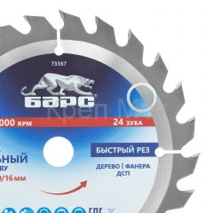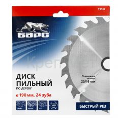 - Пильный диск по дереву 190 x 20/16 мм, 24 твердосплавных зуба Барс