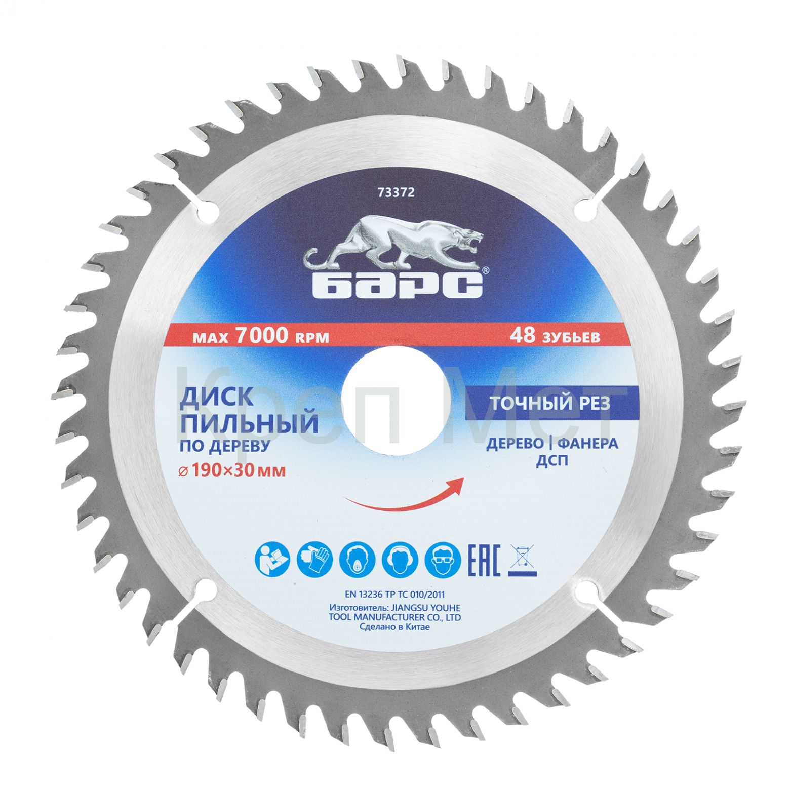 - Пильный диск по дереву 190 x 30 мм, 48 твердосплавных зубъев Барс