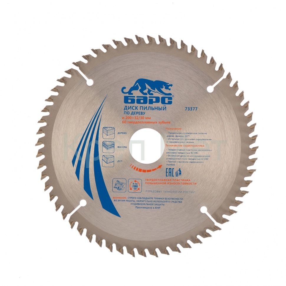 - Пильный диск по дереву 200 x 32/30 мм, 60 твердосплавных зубъев Барс