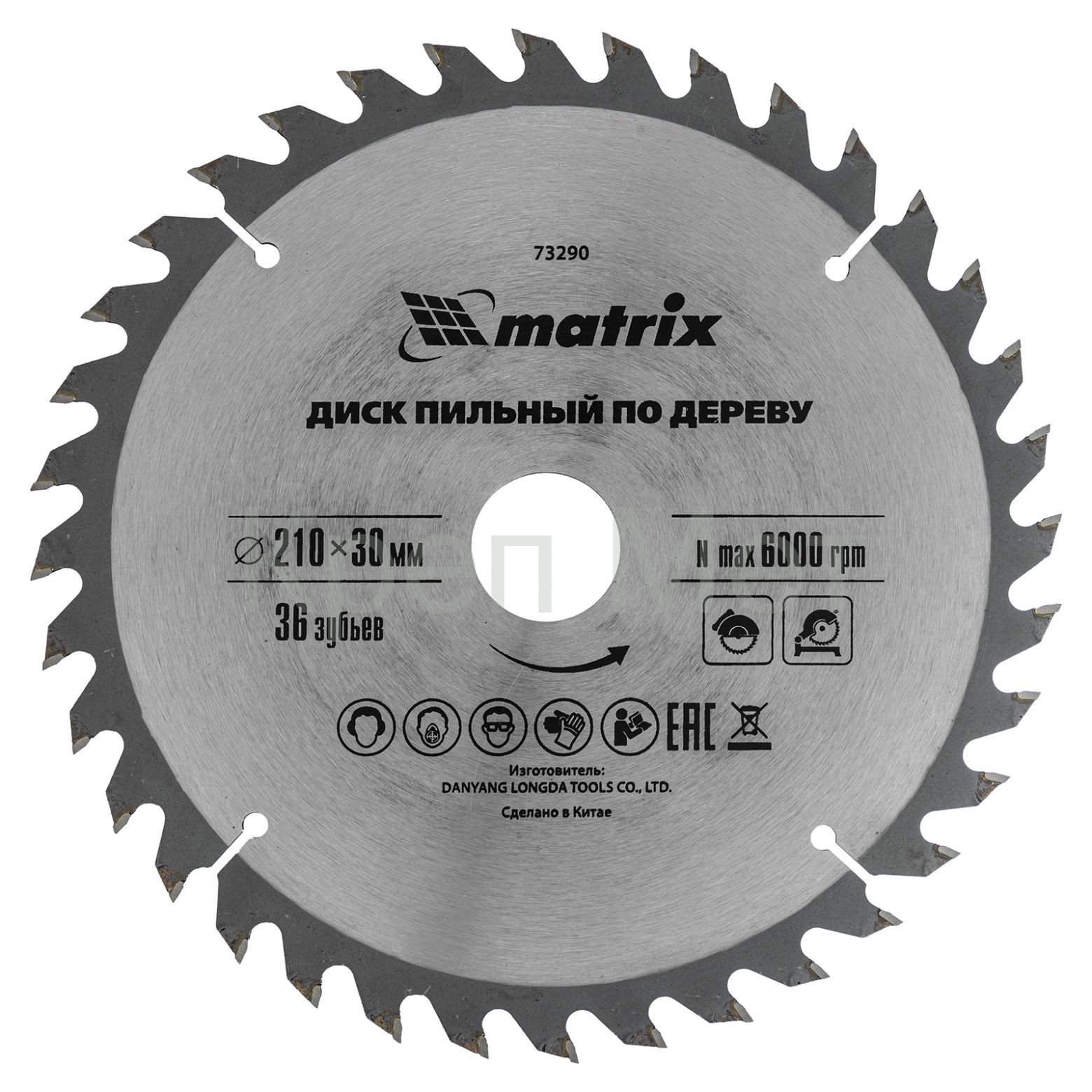 Пильный диск по дереву Matrix 73290 диаметром 210 х 30 мм, с 36 зубьями, — оснастка для циркулярных и торцовочных пил с соответствующим посадочным и внешним диаметром. Используется для продольного/поперечного реза материалов из мягкой и твердой древесины, ДСП, ДВП, фанеры, столярных плит. Диск подходит для бытового и профессионального применения.