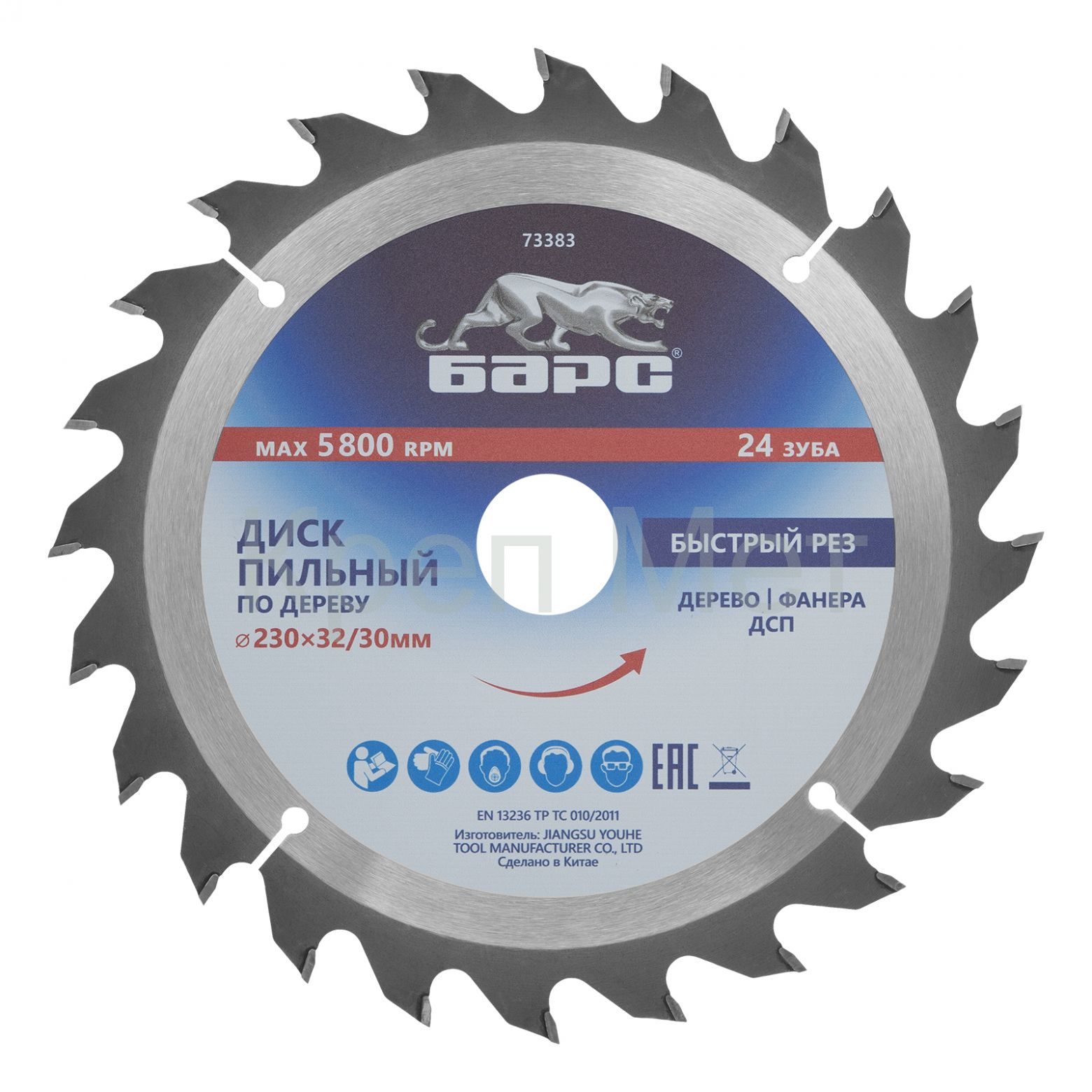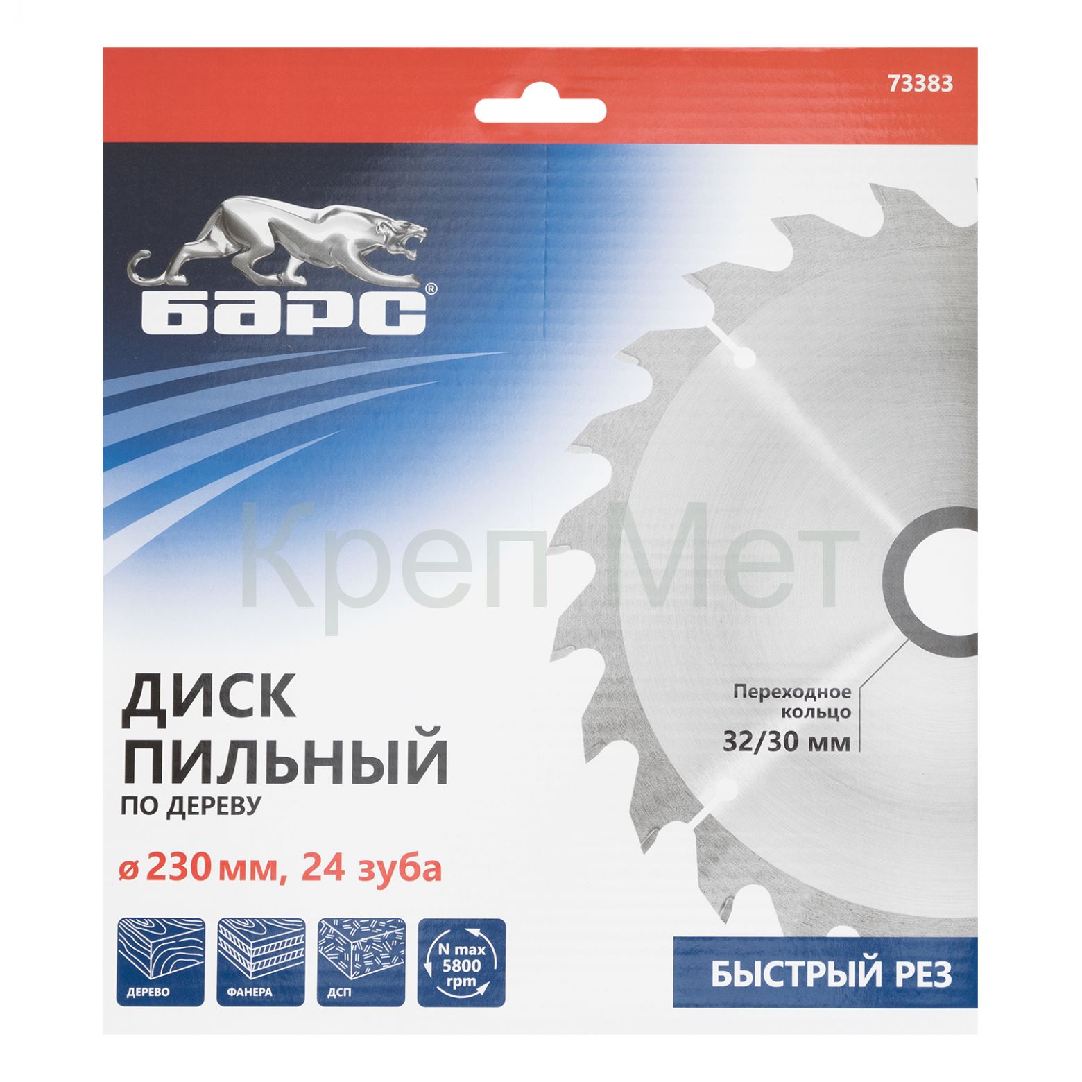Пильный диск по дереву 230 x 32/30 мм, 24 твердосплавных зуба Барс