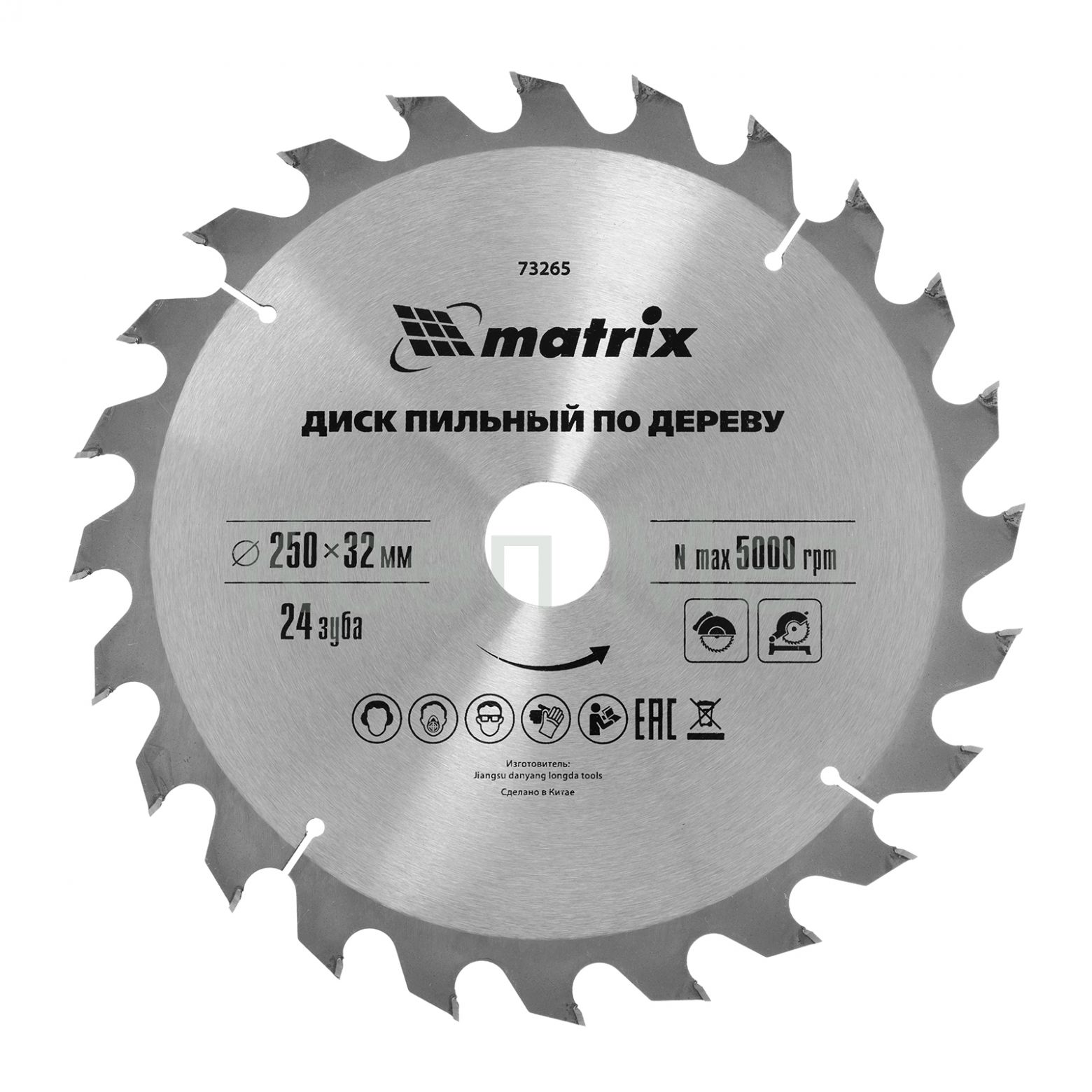 - Пильный диск по дереву, 250 х 32 мм, 24 зуба Matrix Professional