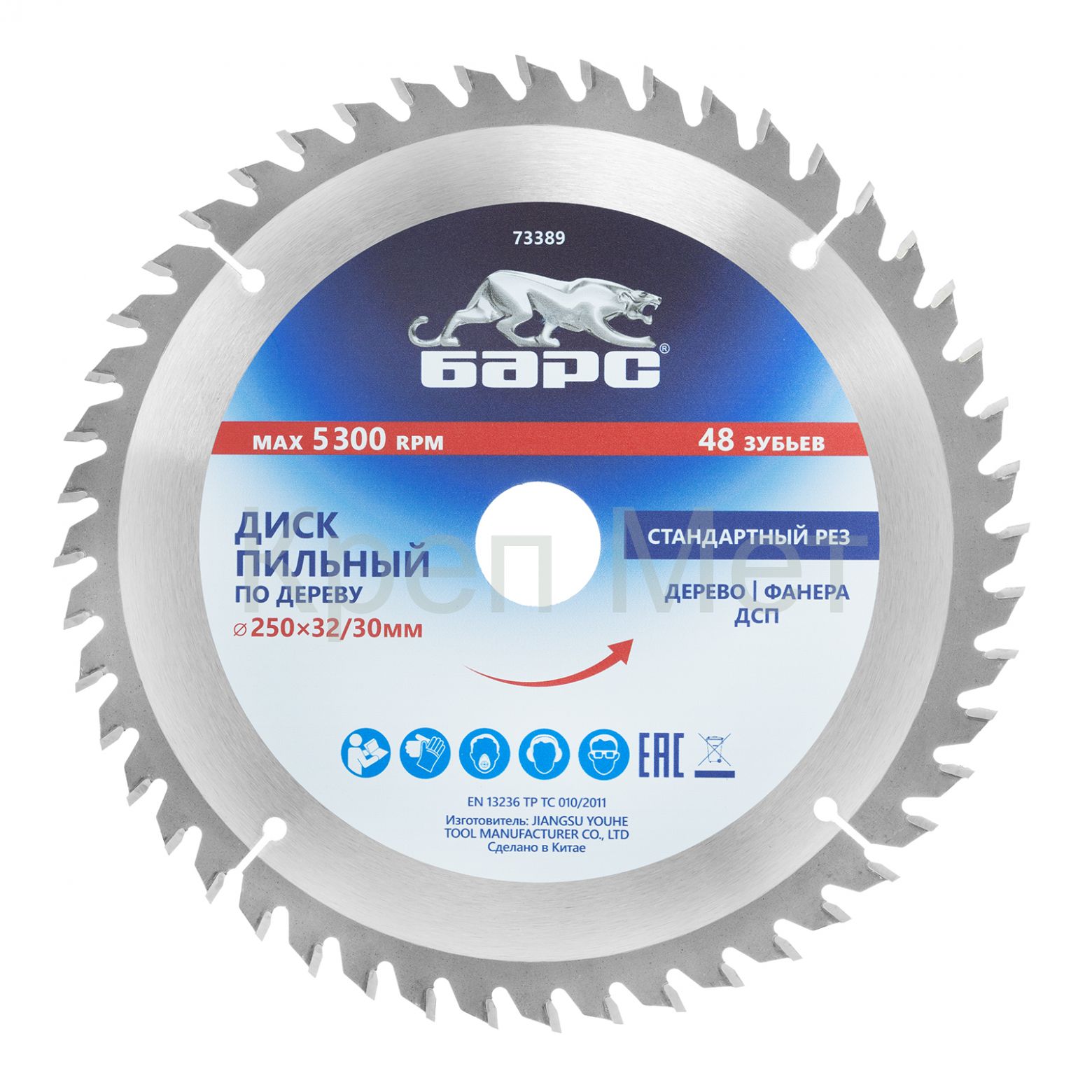 Пильный диск по дереву 250 x 32/30 мм, 48 твердосплавных зубъев Барс