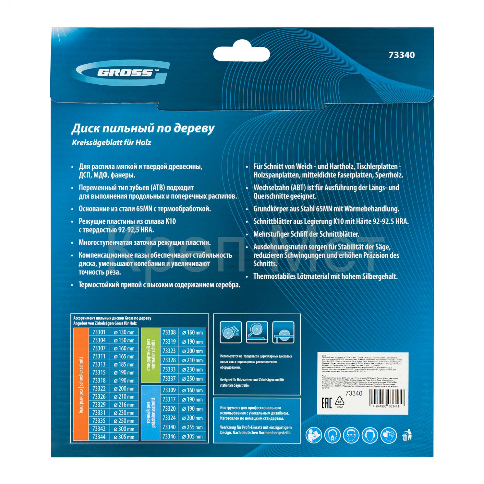 Пильный диск по дереву 255 x 32/30 x 72Т Gross
