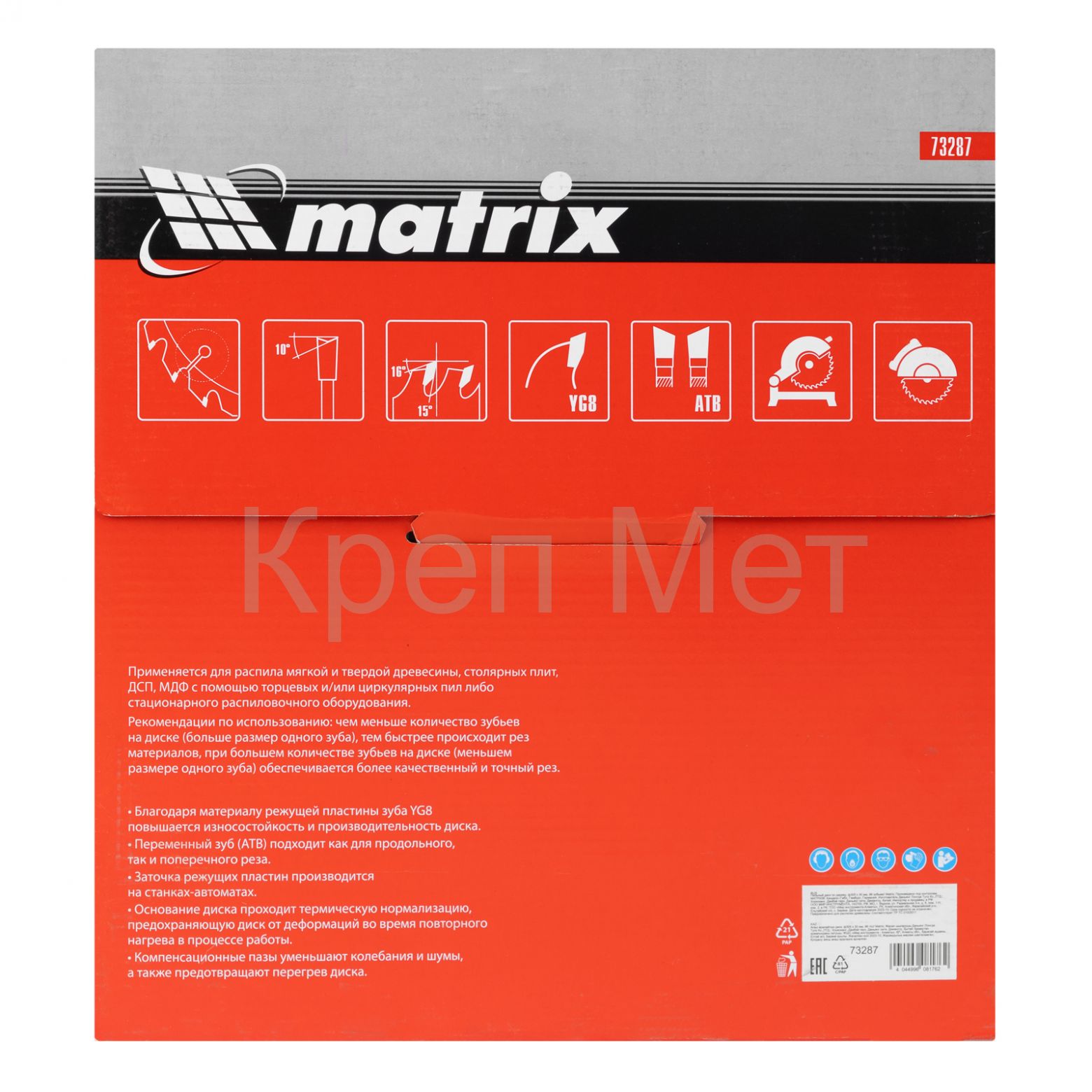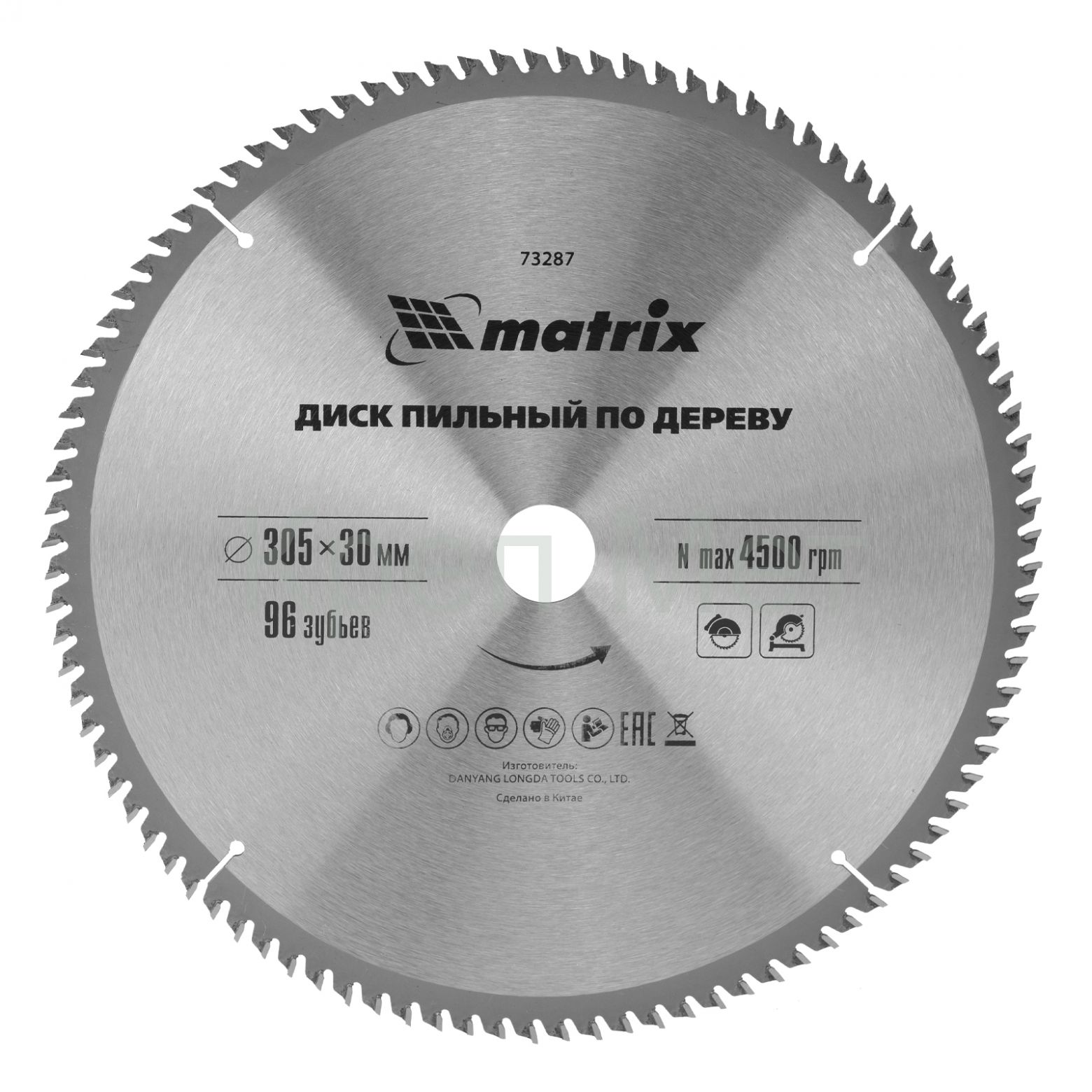 Пильный диск по дереву Matrix 73287 диаметром 305 х 30 мм, с 96 зубьями, — оснастка для циркулярных и торцовочных пил с соответствующим посадочным и внешним диаметром. Используется преимущественно для поперечного реза материалов из мягкой и твердой древесины, ДСП, ДВП, фанеры, столярных плит. Диск подходит для бытового и профессионального применения.