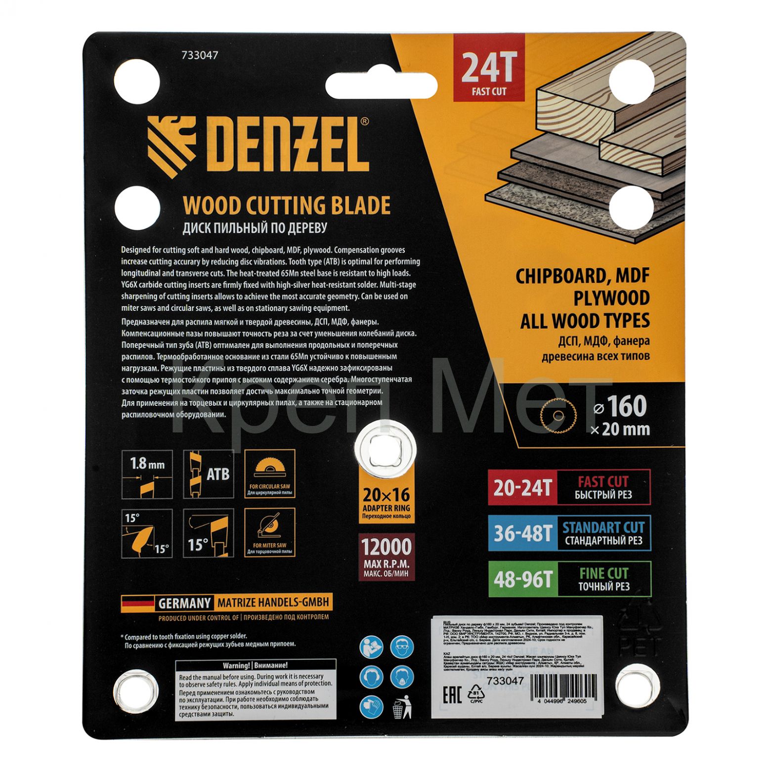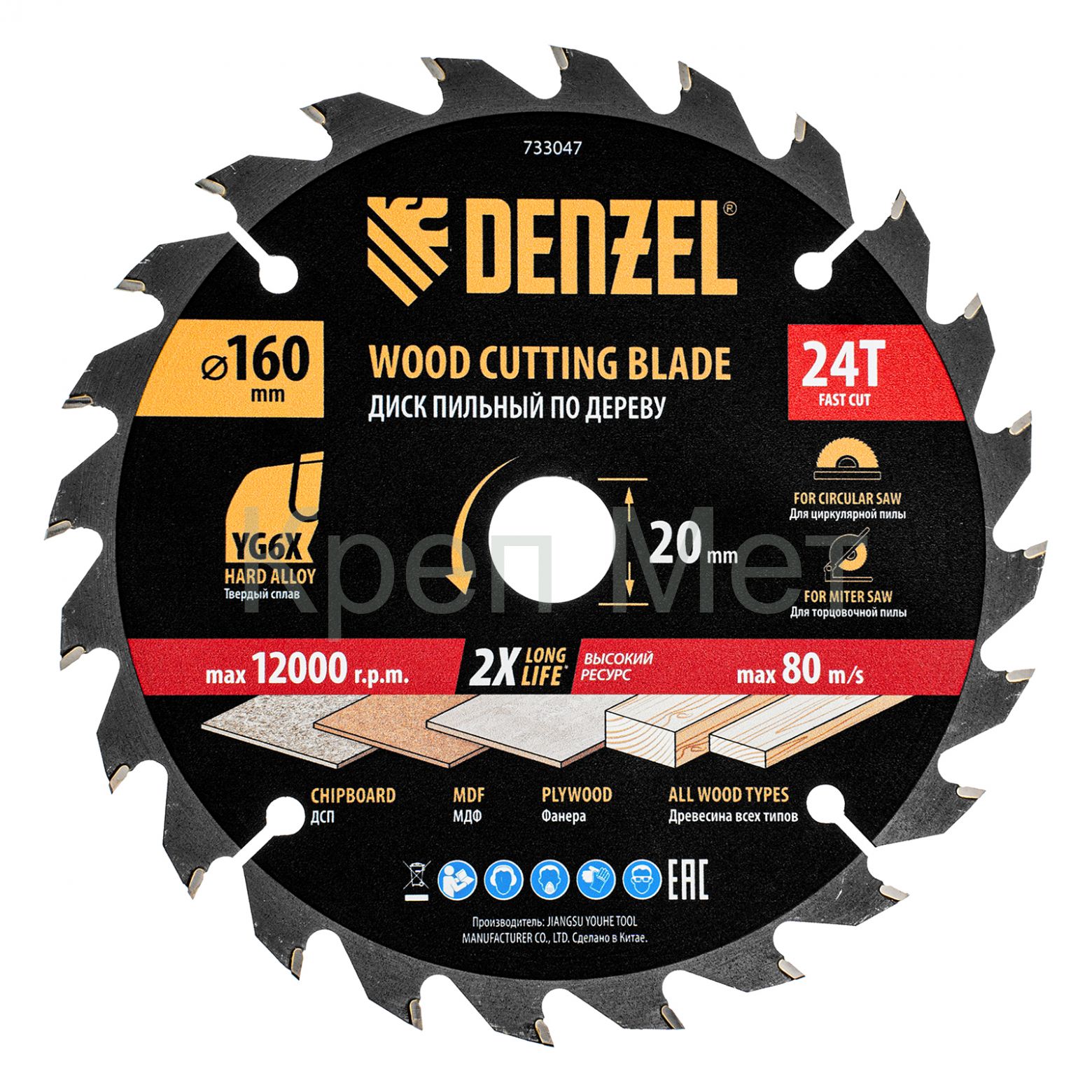 Пильный диск по дереву ф160 х 20 мм, 24 зубьев Denzel