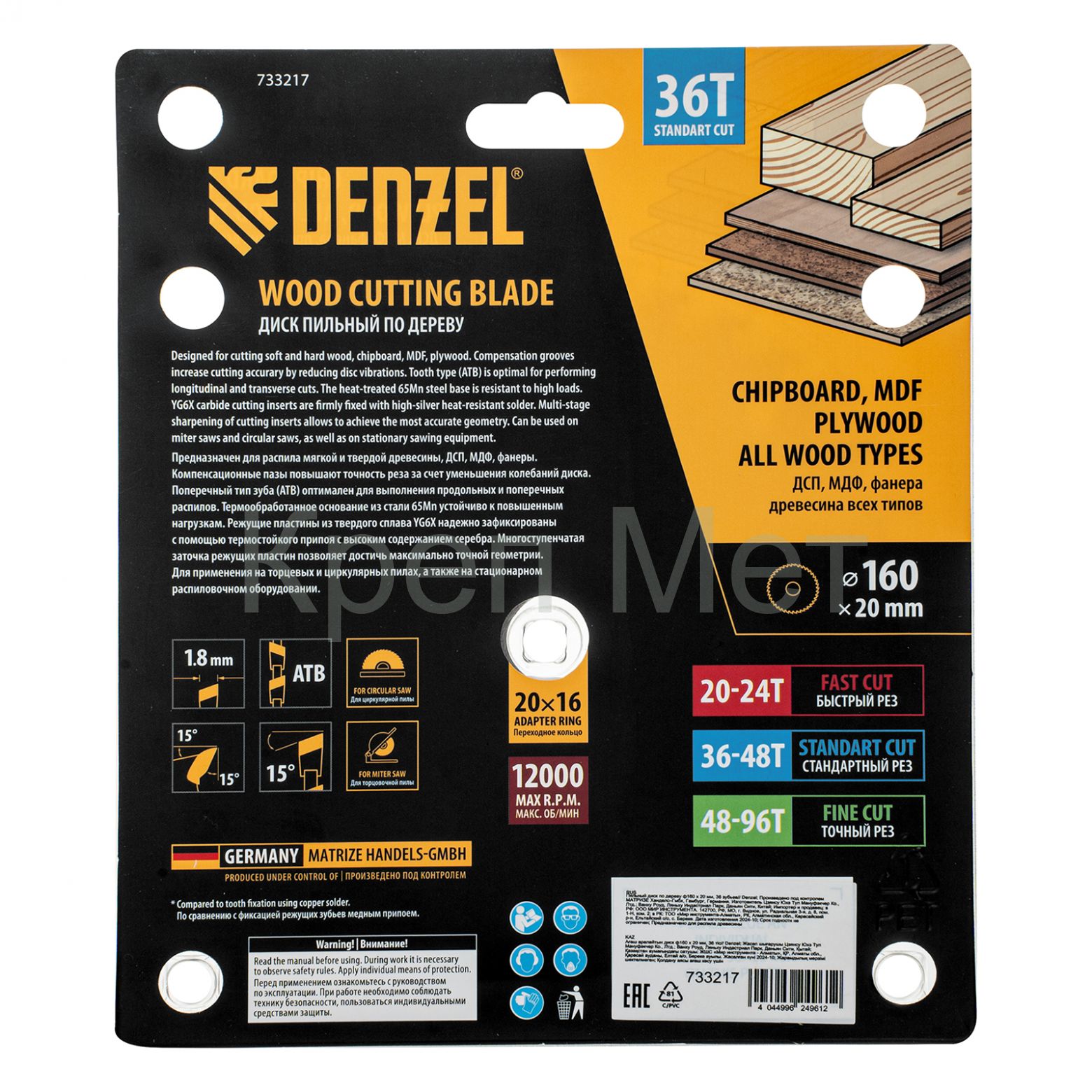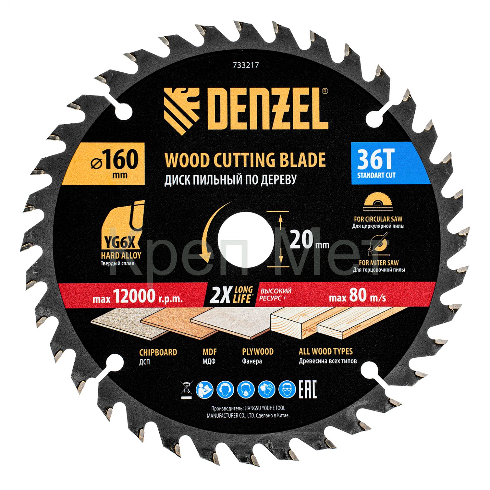 Пильный диск по дереву ф160 х 20 мм, 36 зубьев Denzel