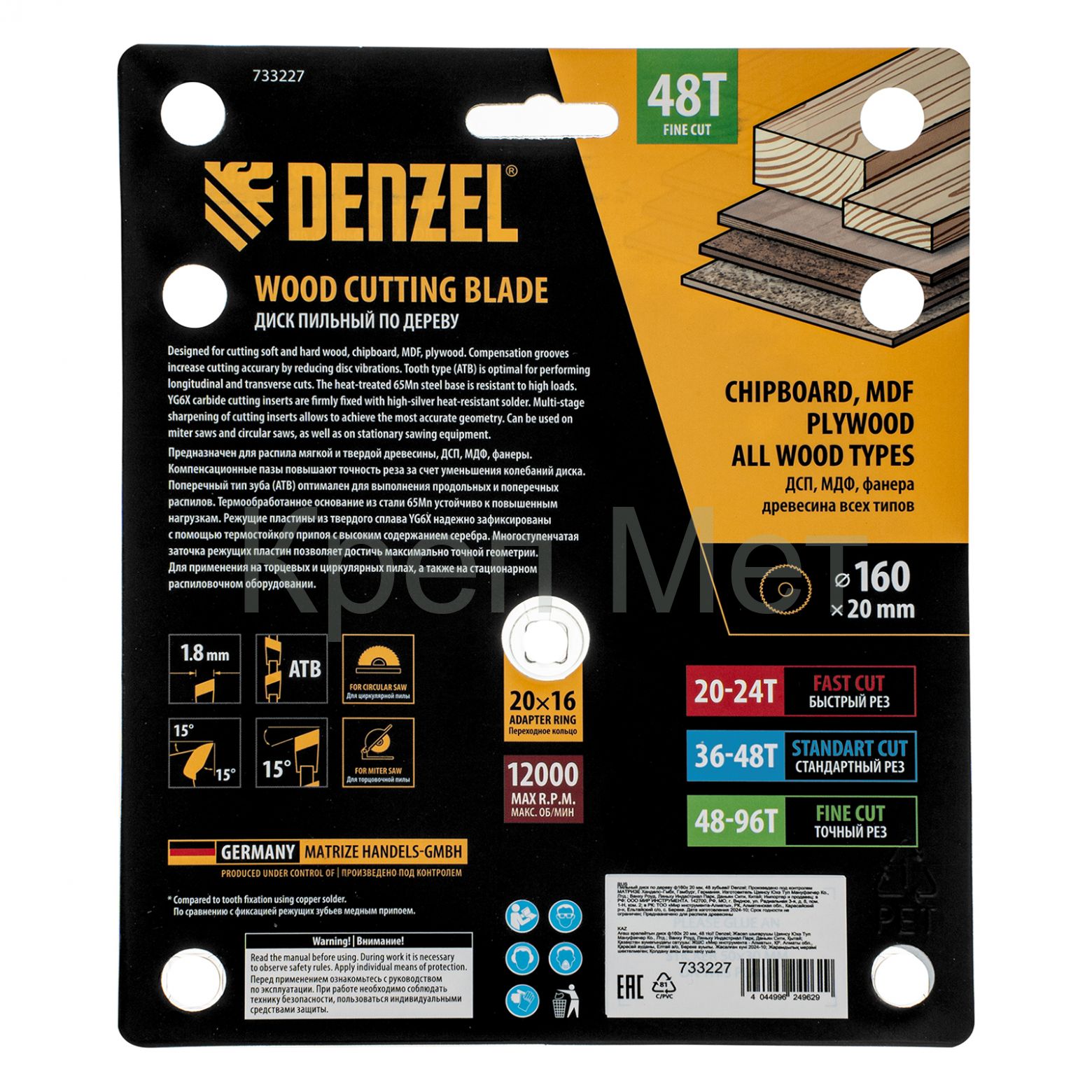 Пильный диск по дереву ф160х 20 мм, 48 зубьев Denzel