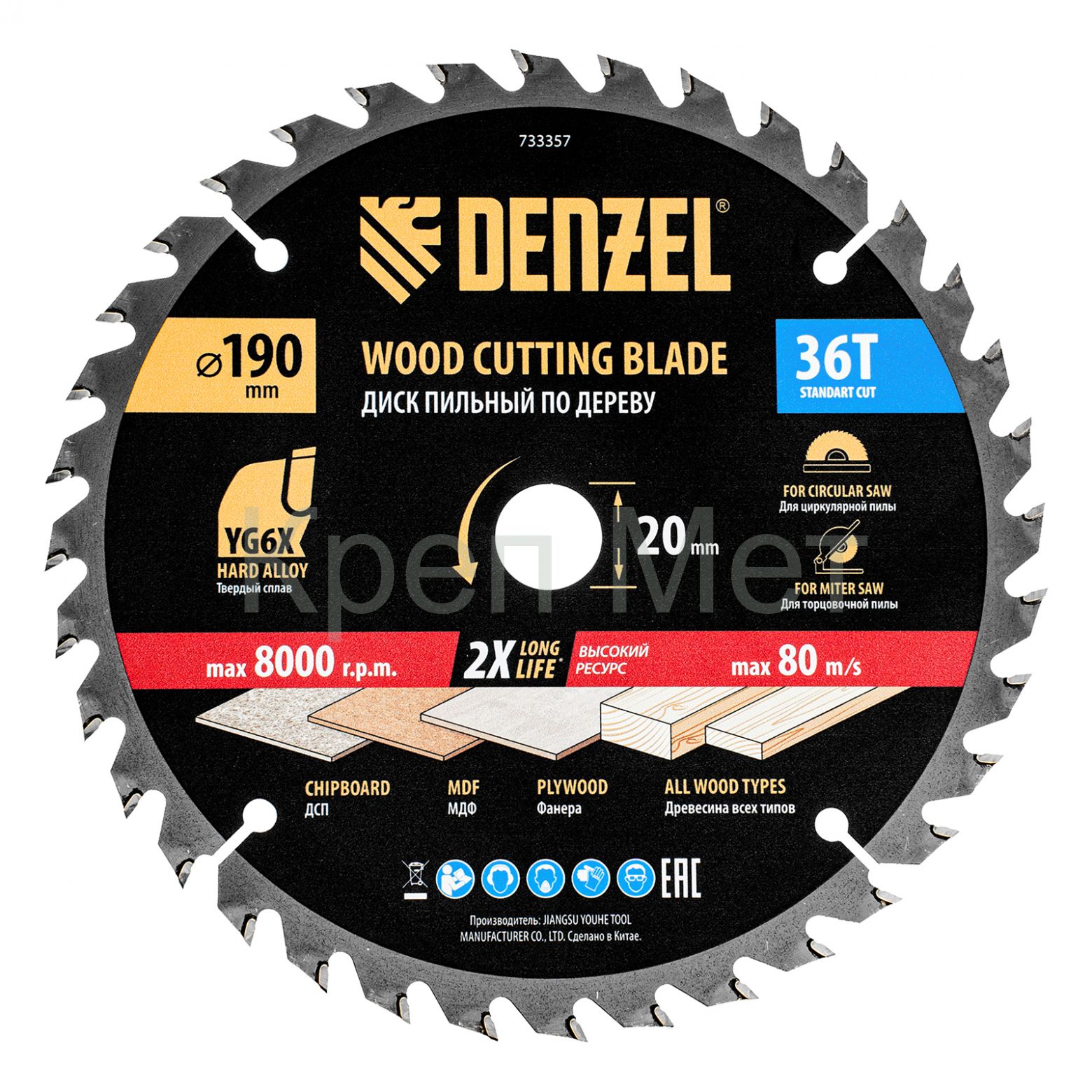 Пильный диск по дереву ф190 х 20 мм, 36 зубьев Denzel