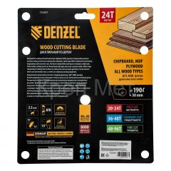 - Пильный диск по дереву ф190 х 30 мм, 24 зубьев Denzel
