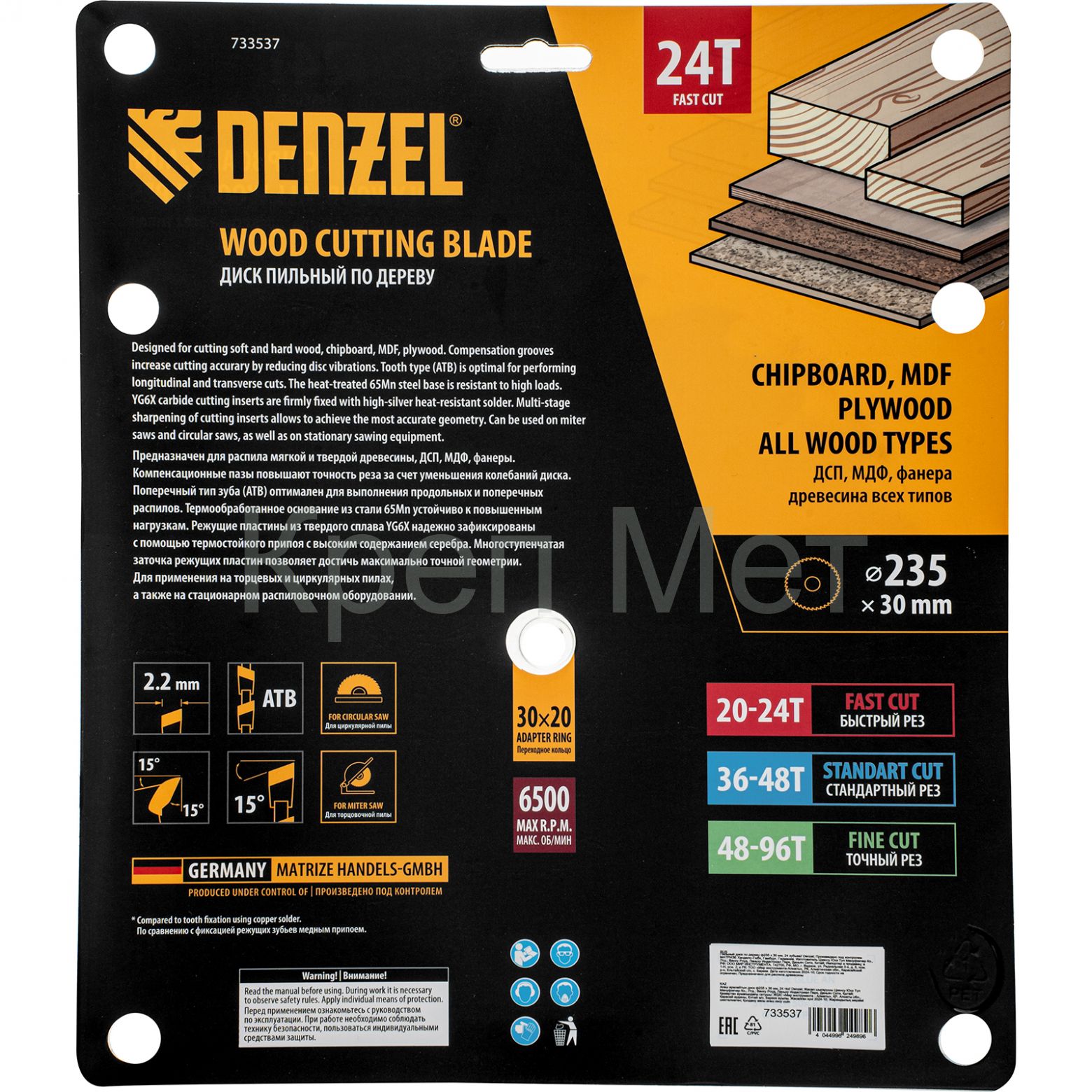Пильный диск по дереву ф235 х 30 мм, 24 зубьев Denzel