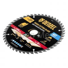 Пильный диск Denzel 733547 диаметром 235 x 30 мм, с 48 зубьями, предназначен для продольного и поперечного распила твердой и мягкой древесины, фанеры, МДФ, ДСП. 48 зубьев типа ATB с режущими пластинами оптимальной геометрии обеспечивают качественный рез. Тип реза — стандартный. Режущие пластины из твердого сплава YG6X сохраняют рабочие свойства при интенсивном использовании. Диск устанавливается на циркулярную, торцовочную пилу или на распиловочный станок. В комплект поставки входит переходное кольцо с 30 на 20 мм, что позволяет изменить посадочный размер и расширяет возможности использования диска.