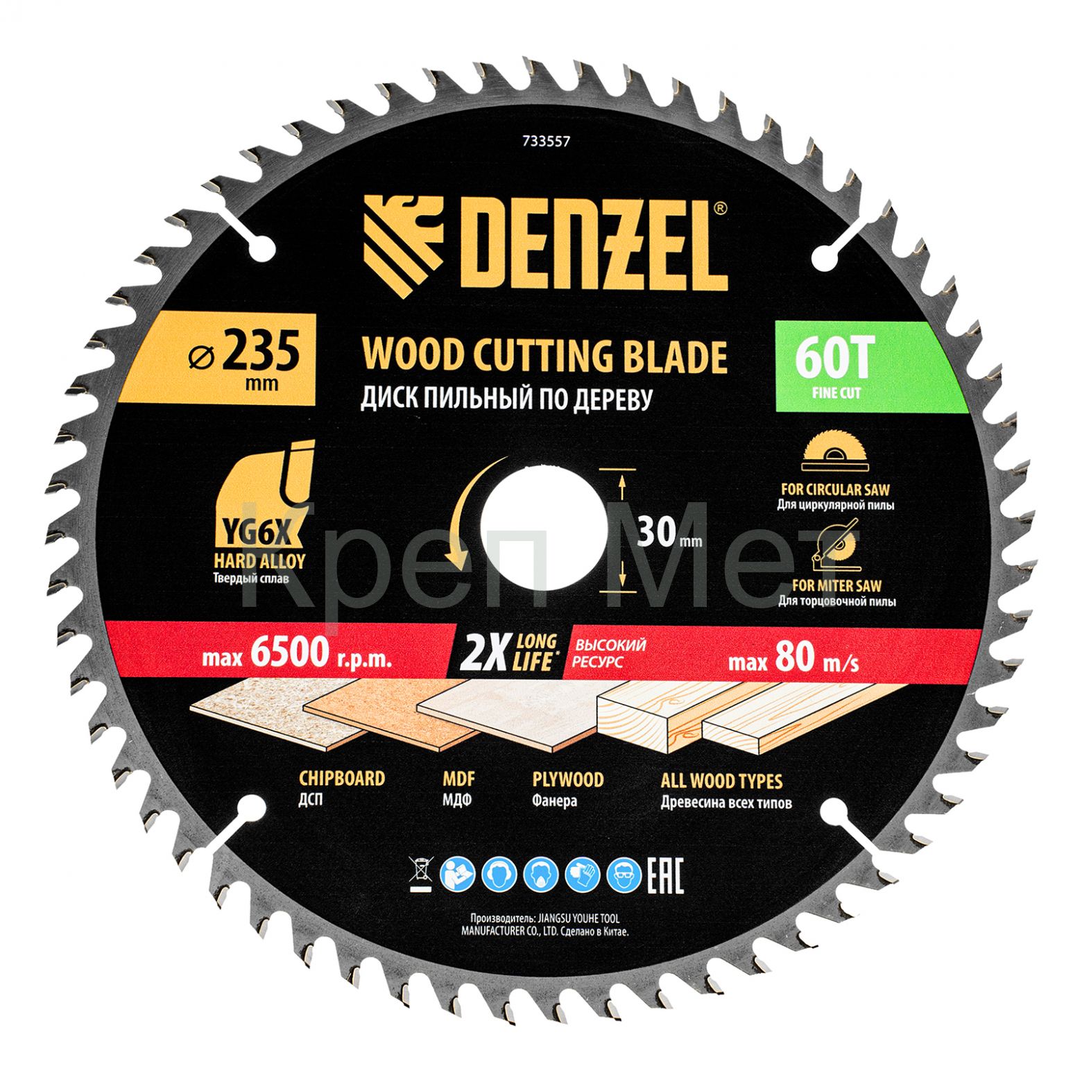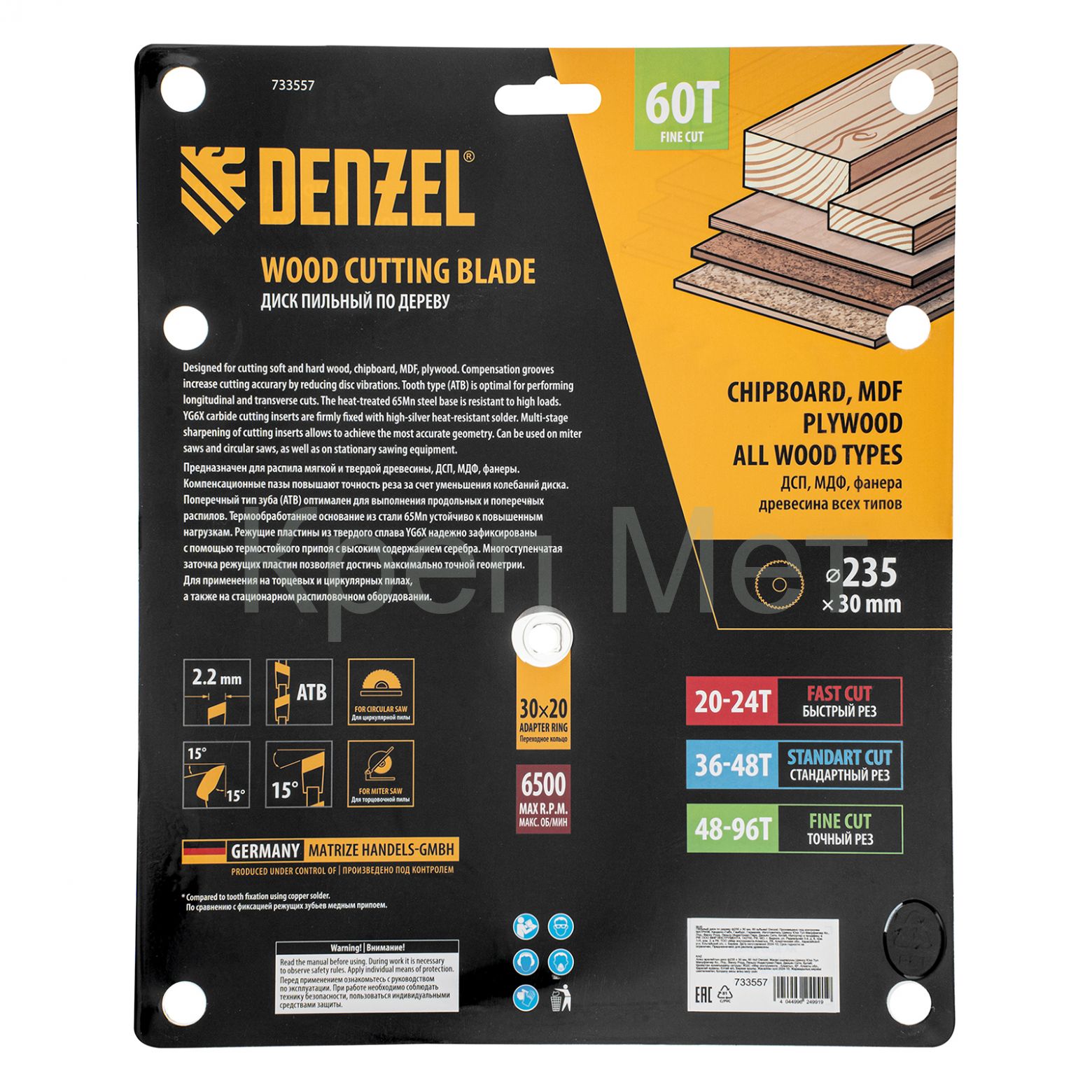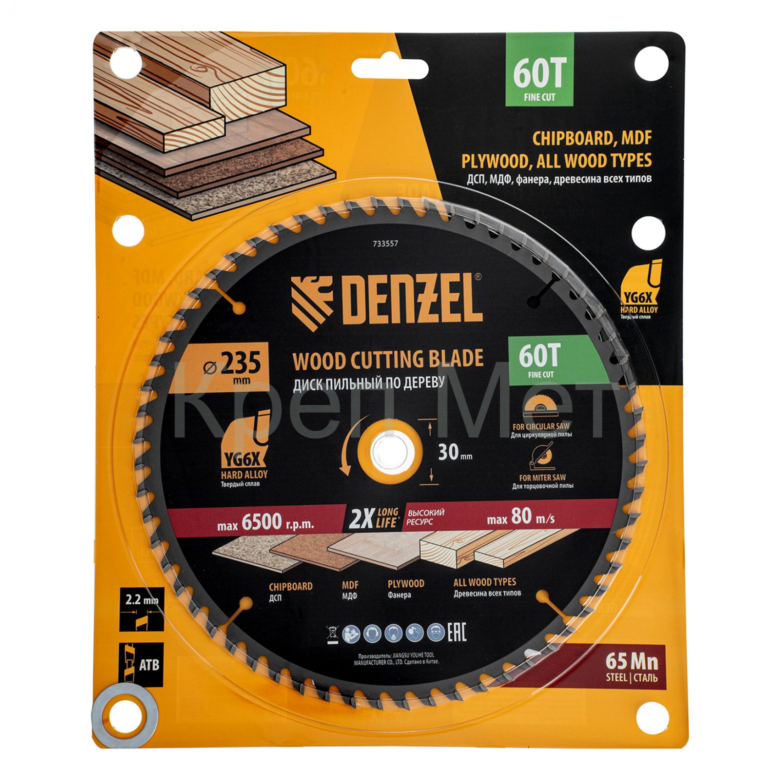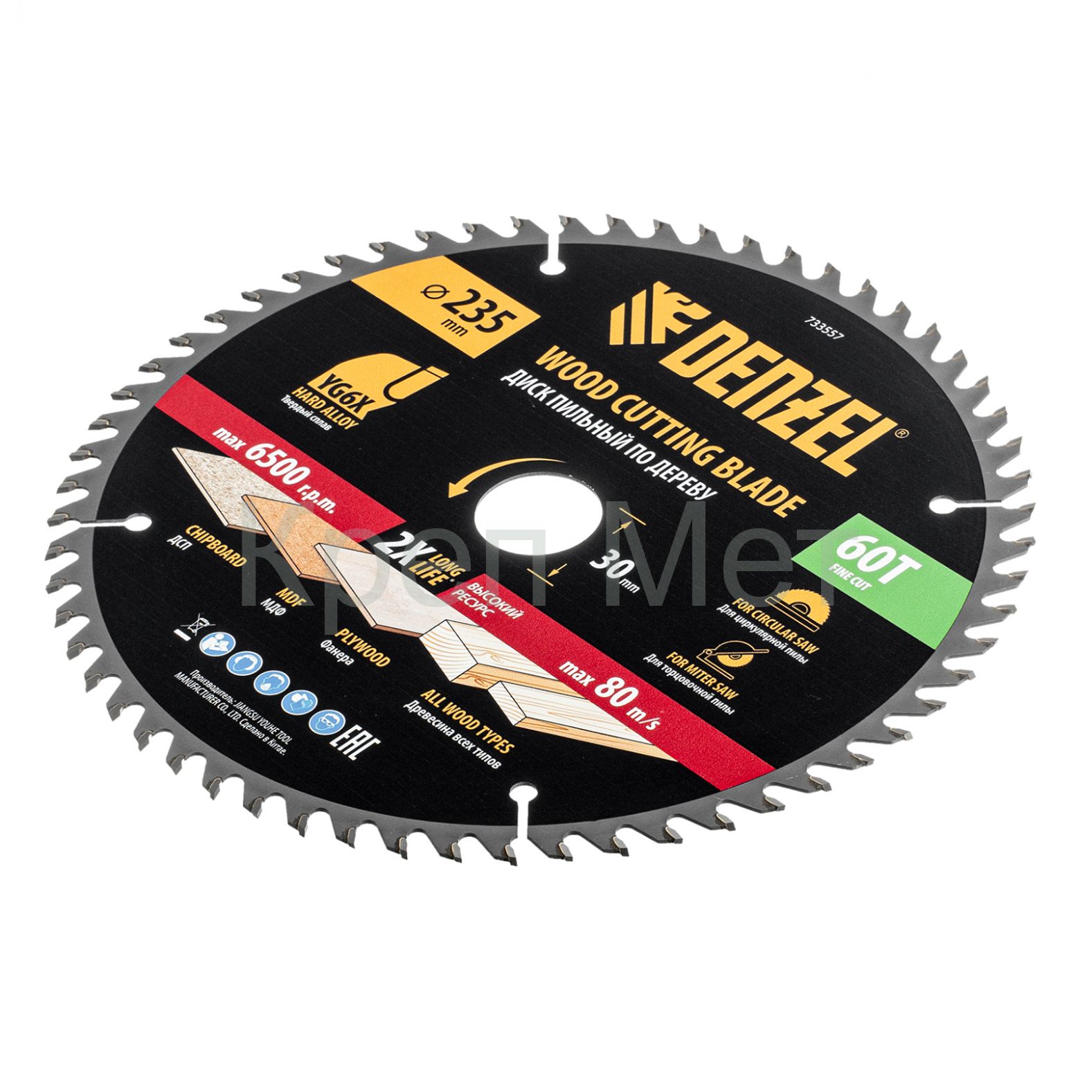 Пильный диск по дереву ф235 х 30 мм, 60 зубьев Denzel