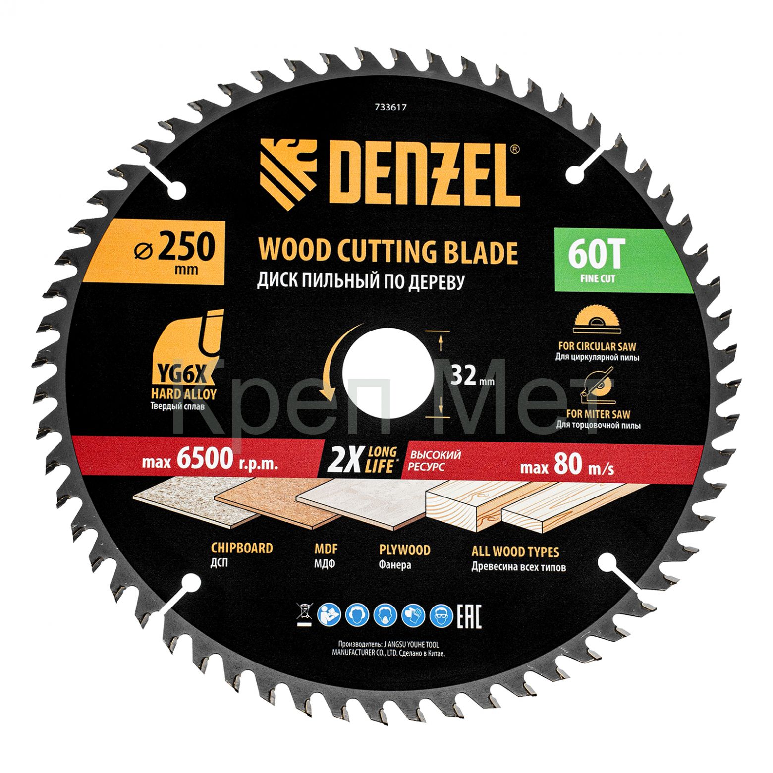 Пильный диск по дереву ф250 х 32 мм, 60 зубьев Denzel