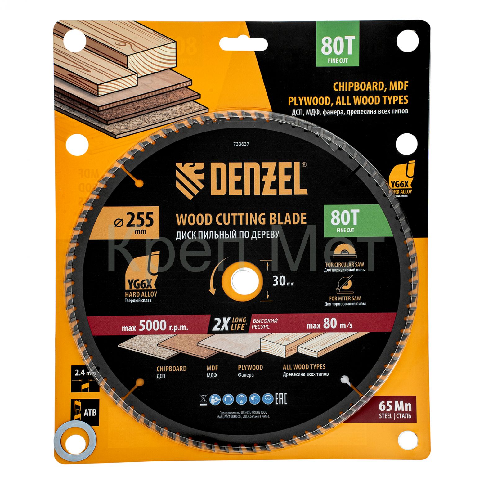 Пильный диск по дереву ф255 х 30 мм, 80 зубьев Denzel