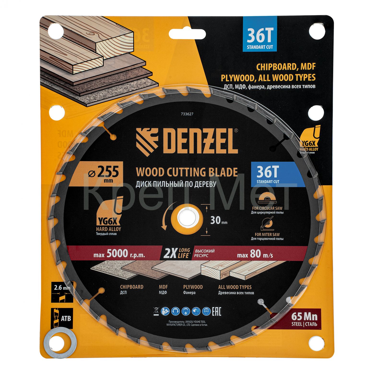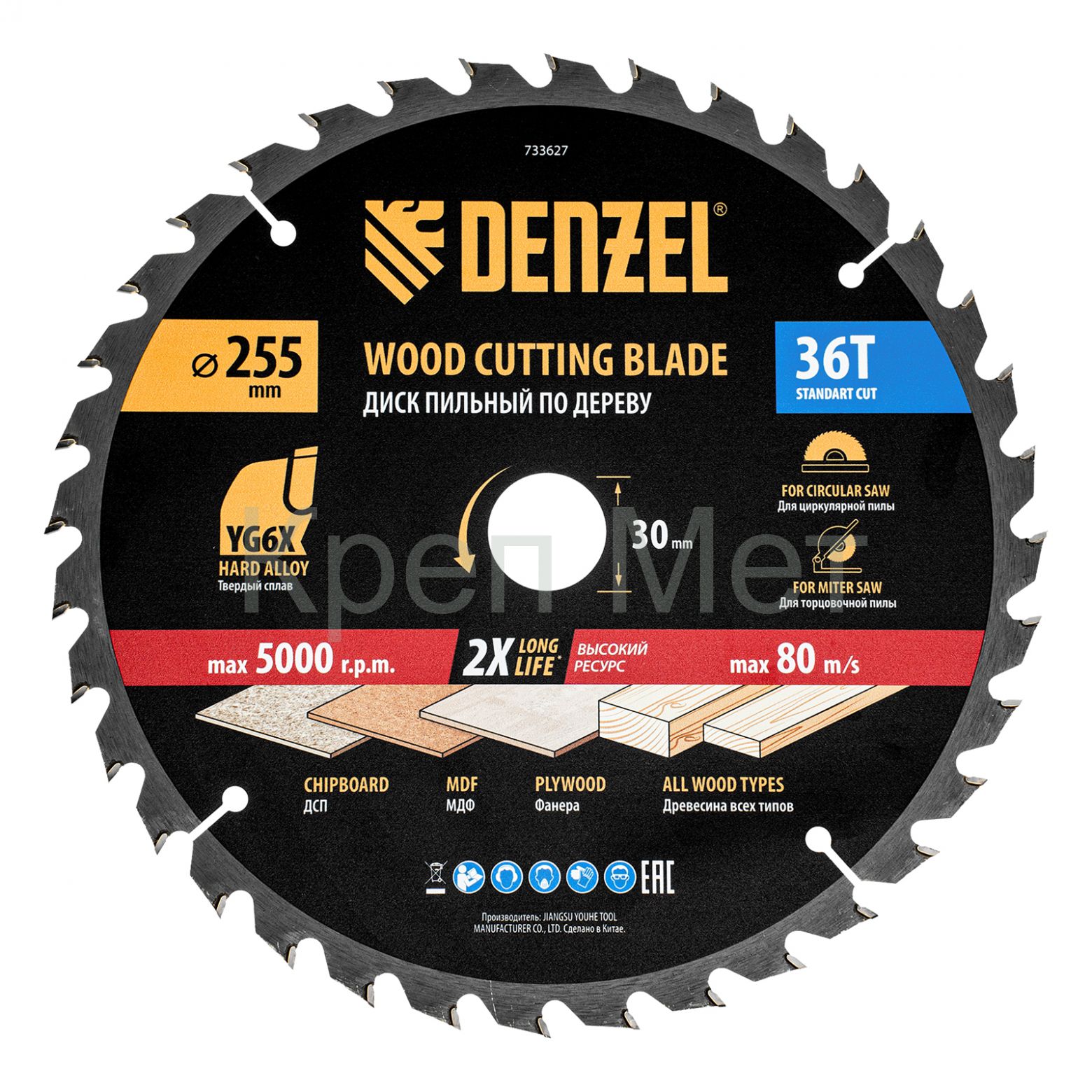 Пильный диск по дереву ф255 х 30мм, 36 зубьев Denzel