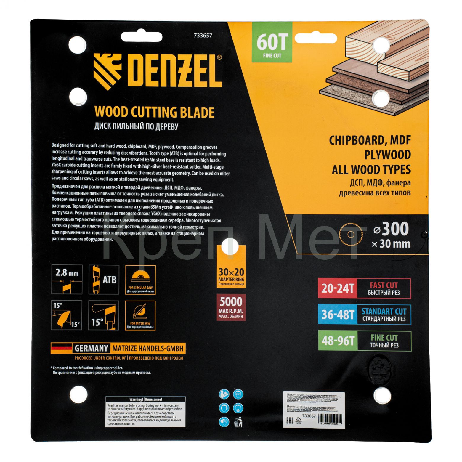 Пильный диск по дереву ф300 х 30 мм, 60 зубьев Denzel