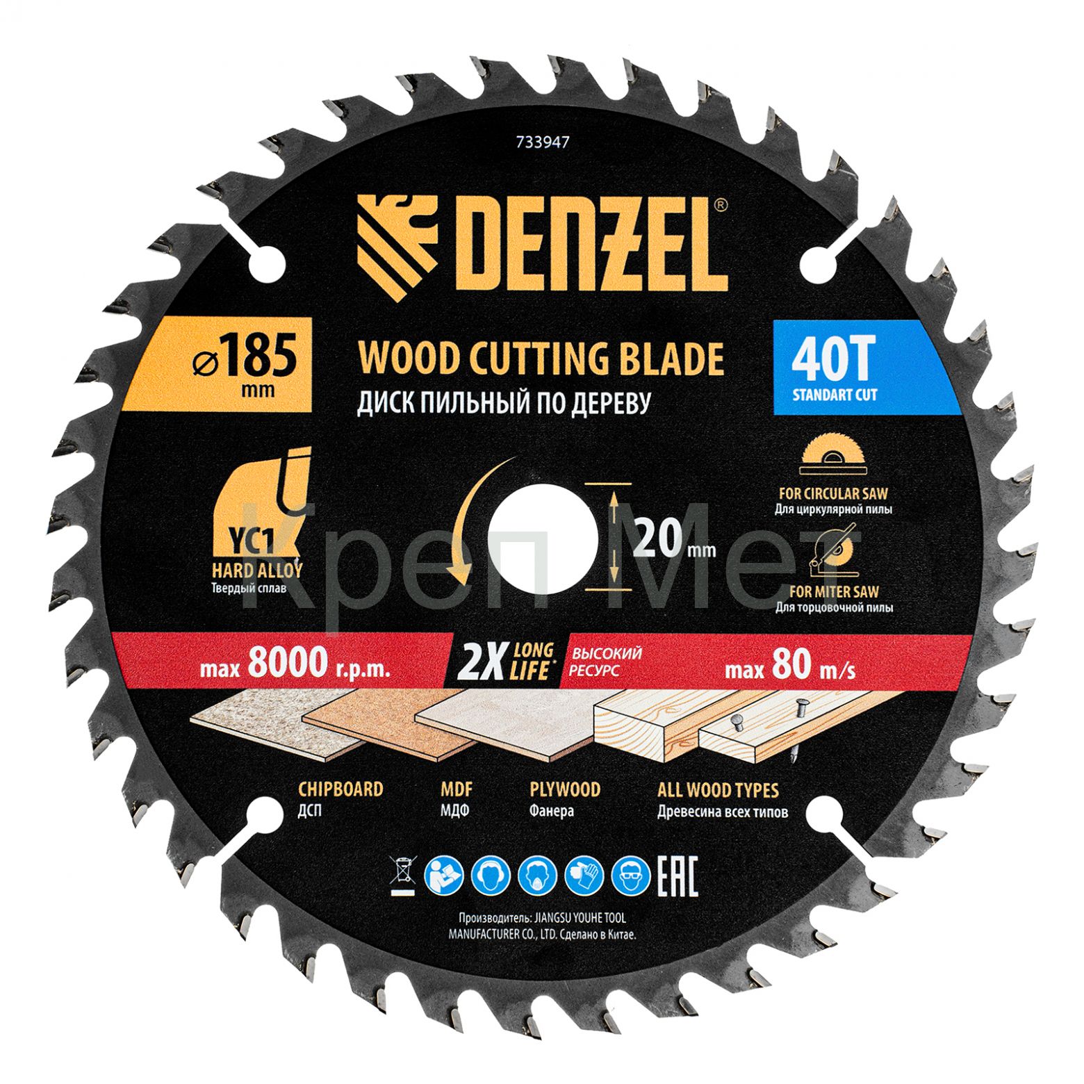 Пильный диск по дереву с гвоздями, ф185 х 20 мм, 40 зубов Denzel