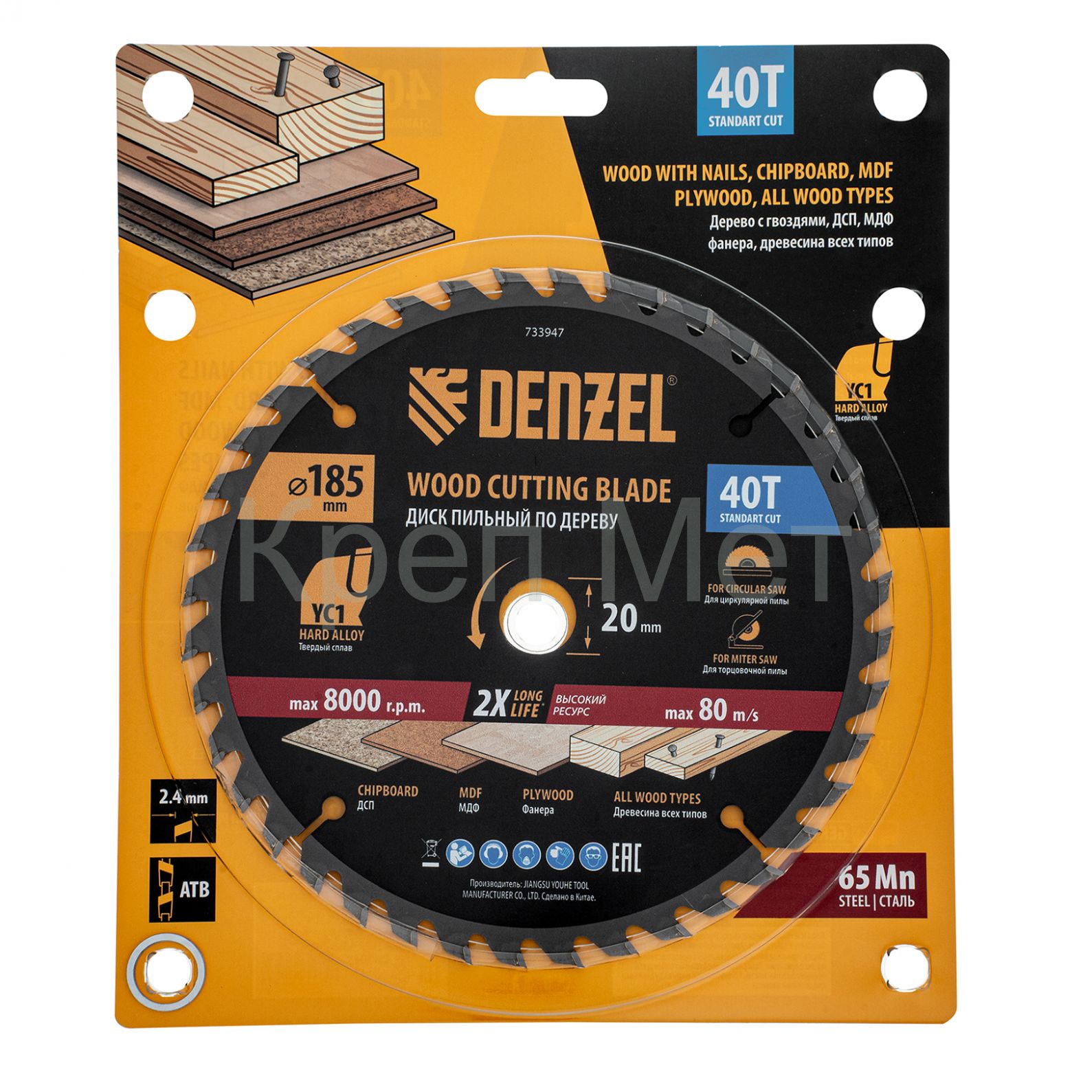 - Пильный диск по дереву с гвоздями, ф185 х 20 мм, 40 зубов Denzel