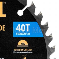 Пильный диск Denzel 733947 диаметром 185 x 20 мм, с 40 зубьями типа ATB, предназначен для продольного и поперечного распиливания древесины всех типов, в том числе с гвоздями и остатками бетона, а также ДСП, МДФ, фанеры. Тип реза — стандартный. Режущие пластины из твердого сплава YC1, прошедшие многоступенчатую заточку, позволяют успешно справляться с прочными материалами. Диск устанавливается на циркулярную, торцовочную пилу или на распиловочный станок. В комплект поставки входит переходное кольцо 20/16 мм, позволяющее изменить посадочный диаметр при необходимости.