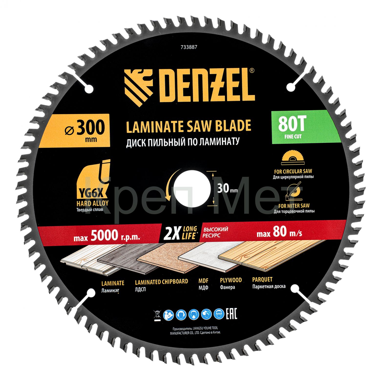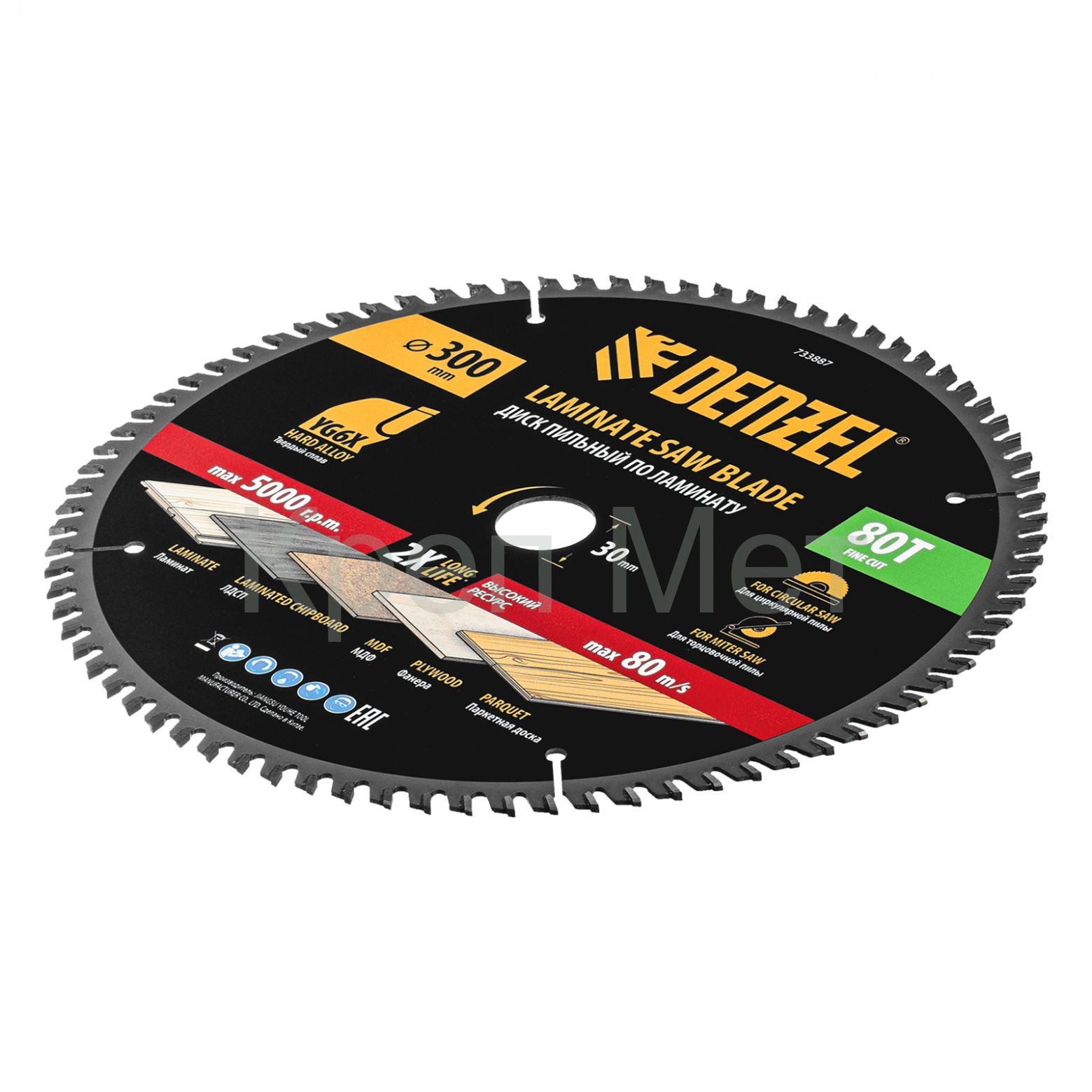 - Пильный диск по ламинату ф300 х 30 мм, 80 зубьев Denzel